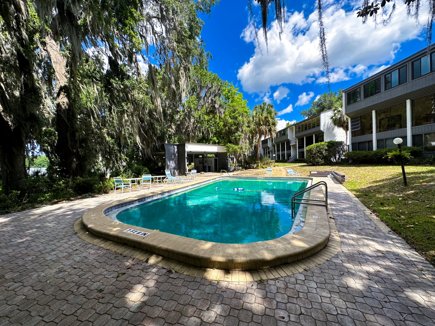 One of the only lakefront condominiums in Gainesville, Bivens Lake Estates South is located directly off 13th Street about two miles from Shands and the University of Florida. The complex includes a pool and community area with a grill and benches. Some units feature a private porch or balcony overlooking the enormous Bivens Lake, giving residents the chance to enjoy peaceful sunsets from their condo. Floorplans range from one-bedroom, one-bathroom units with just over 800 square feet to spacious three-bedroom units reaching up to 1,800 square feet. The two-bedroom, two-bathroom plan is especially popular because it includes a screened or fully enclosed Florida room of about 300 square feet that is often heated and cooled, with views of the lake. This unique community is a great option for those who want to be close to UF or Shands while still enjoying private and peaceful living.