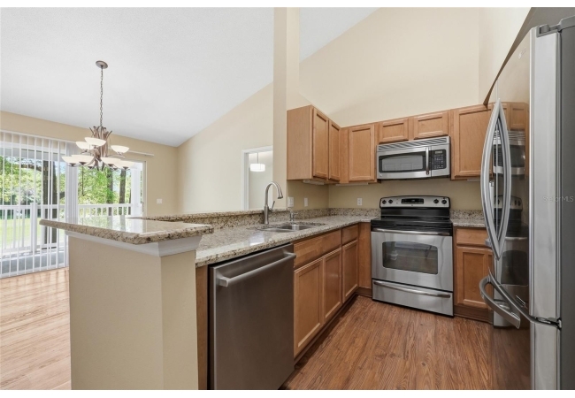 privacy, the kitchen has granite counters and newer appliances, the washer and dryer are conveniently located in a nearby closet