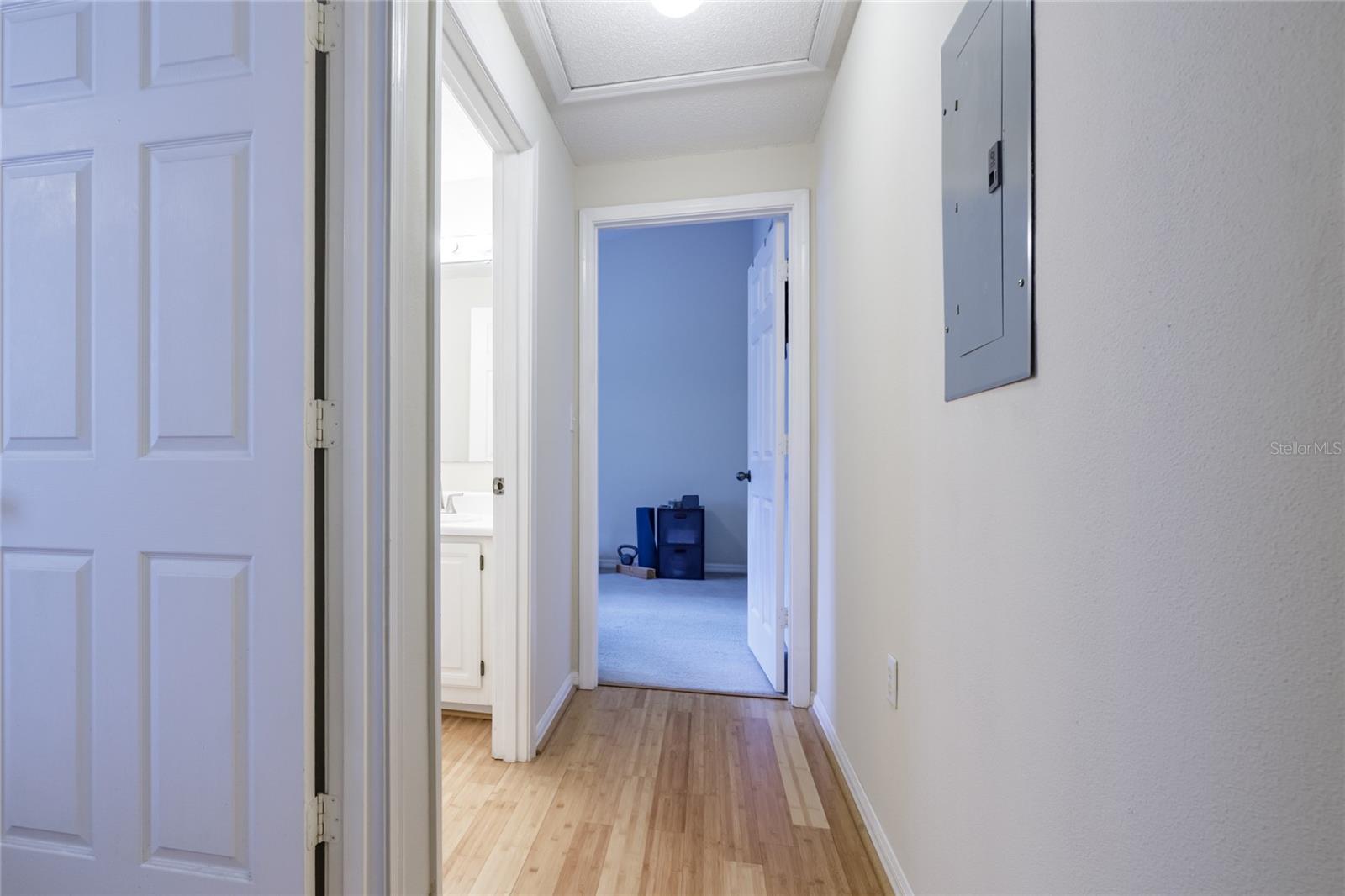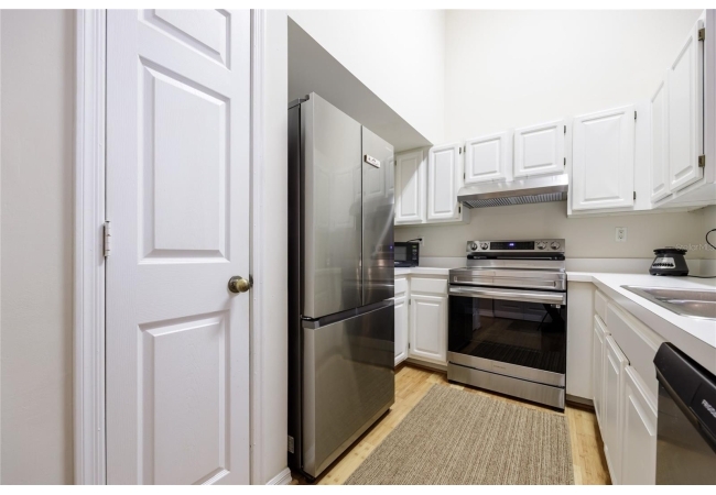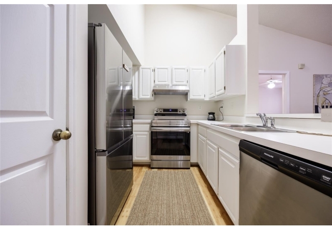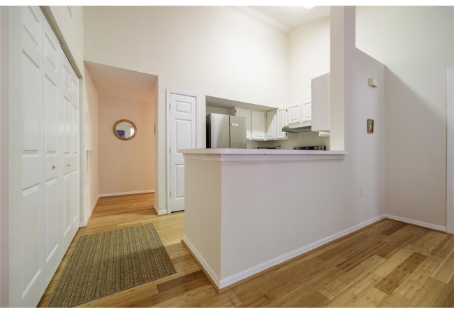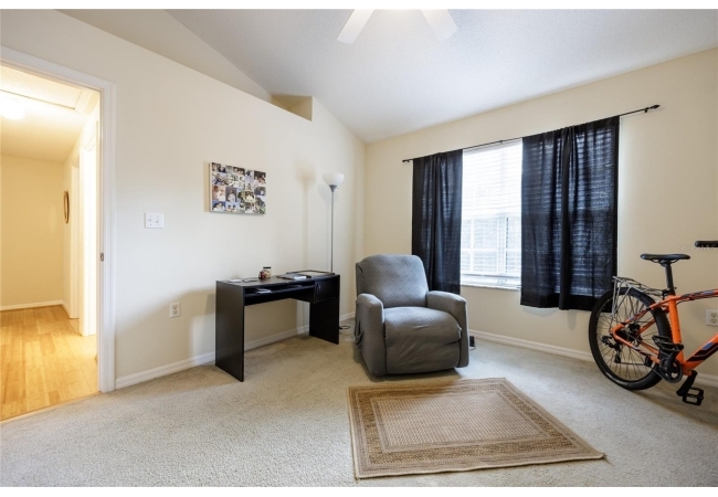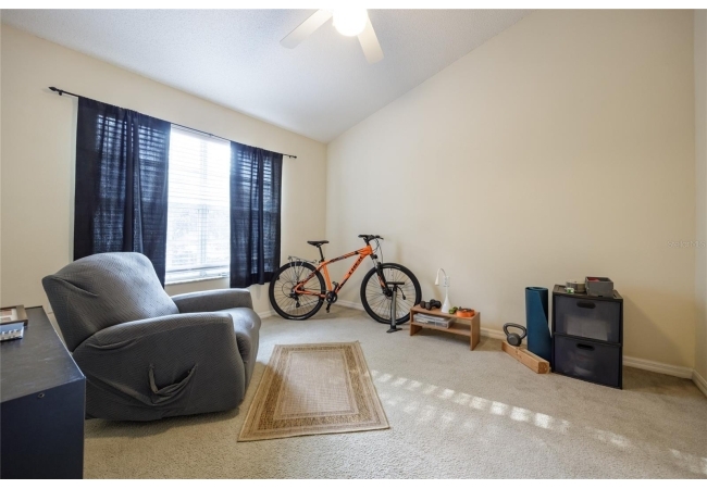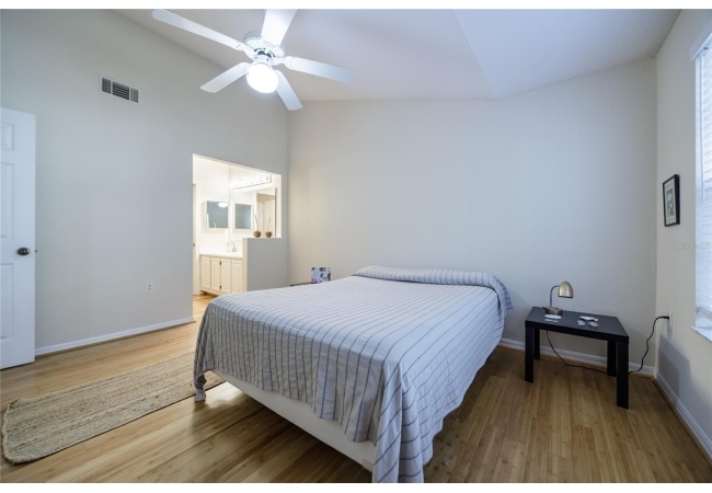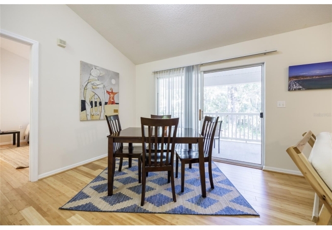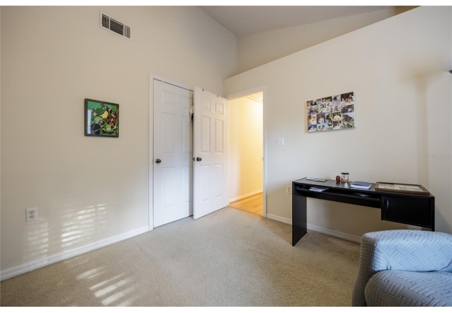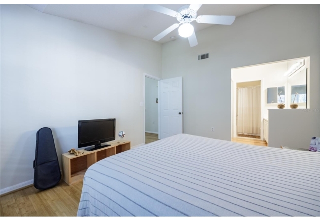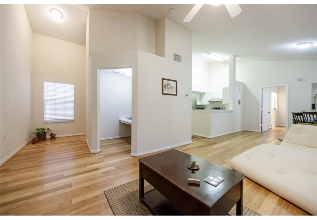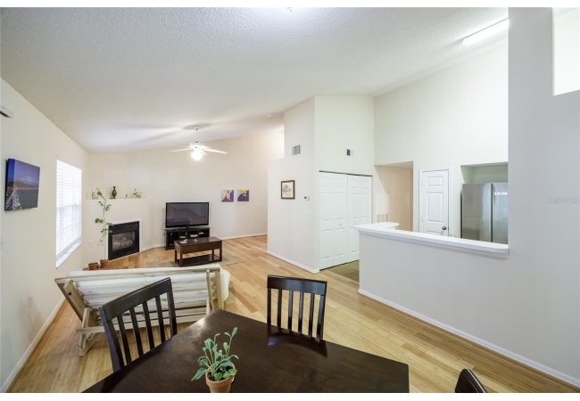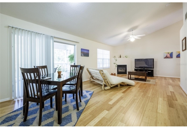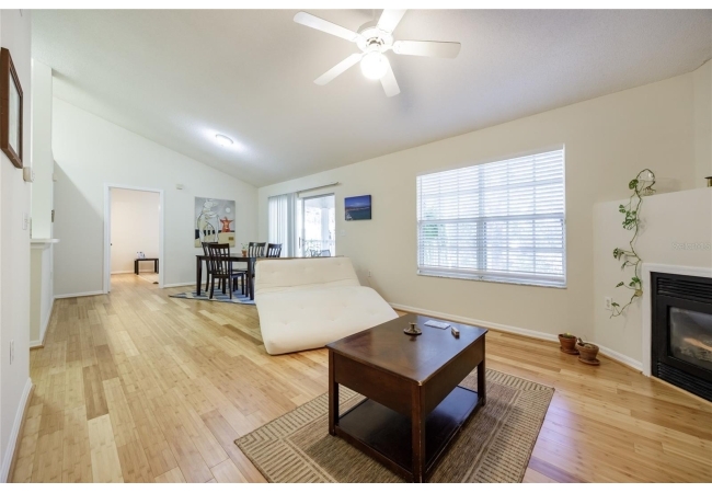 Your Private Retreat awaits! This stunning move in ready 3-bed, 2-bath 1,454 sq. ft. second floor condo located in the Links, is one of Haile Plantation's most sought after condo communities. Ascend the beautiful carpeted stairs and discover a sun drenched, open and airy split floorplan designed for effortless living. You will appreciate the home’s stunning bamboo floors and vaulted ceilings that allow the spacious living space with its convenient office nook to flow into the beautifully appointed living. This space is anchored by a charming corner fireplace — the perfect touch of coziness for quiet evenings, gatherings with friends, or those crisp Florida mornings when you just want to unwind with a morning cup of coffee or evening aperitif. The Primary suite offers a private sanctuary with a generous walk-in closet and an ensuite bathroom. Two additional bedrooms and bathroom provide the ideal setup for guests or your creative space.