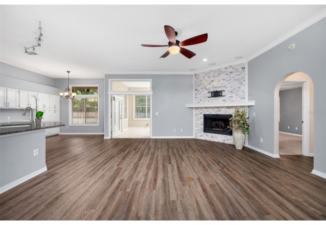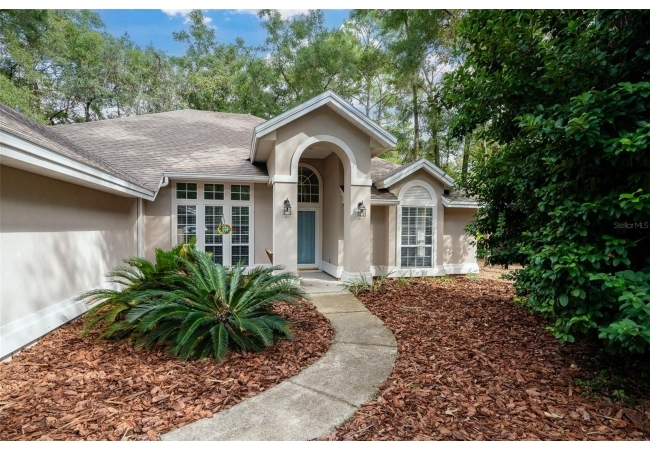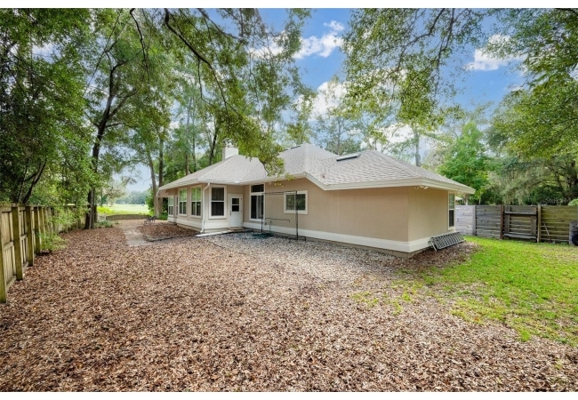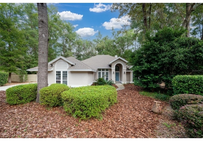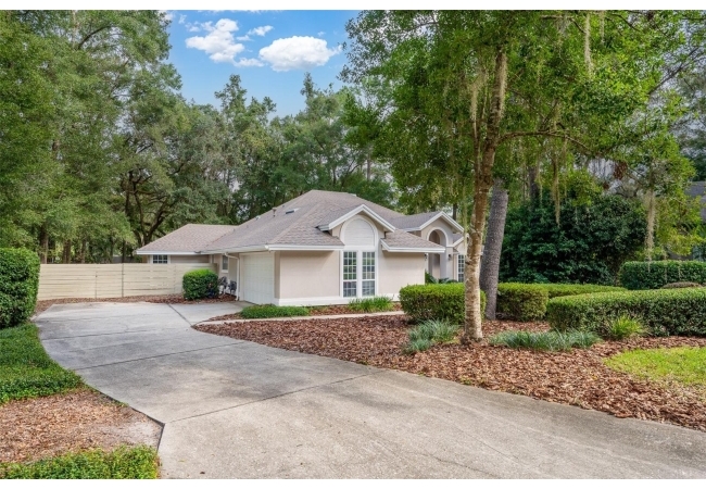 Welcome to 10009 SW 44th Lane, a stunning 4-bedroom, 2-bath home plus office/flex room and sunroom, situated at the end of a cul-de-sac overlooking the Hawkstone Golf Course in sought-after Haile Plantation. This thoughtfully designed residence offers a split floorplan with over 2,200 square feet of comfortable living space and elegant upgrades throughout.