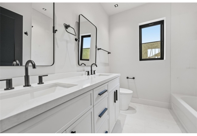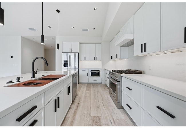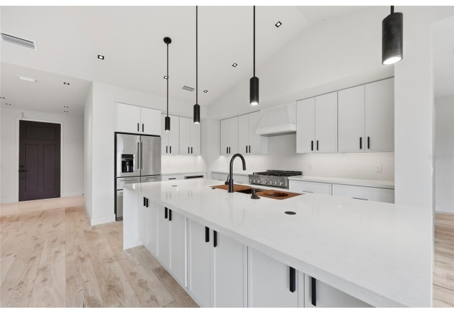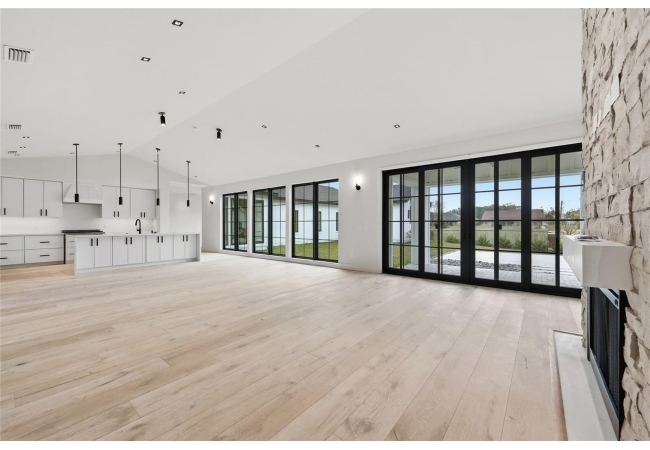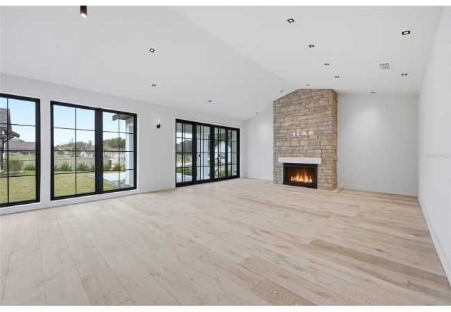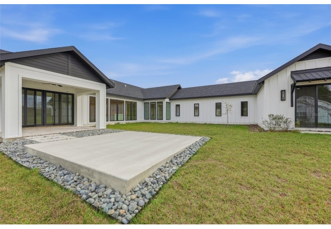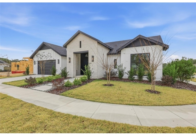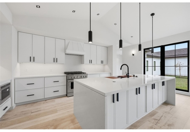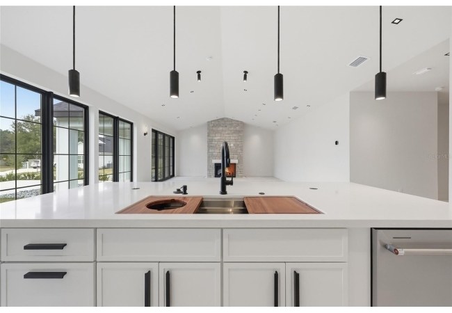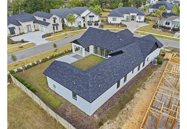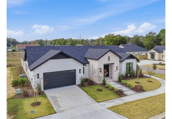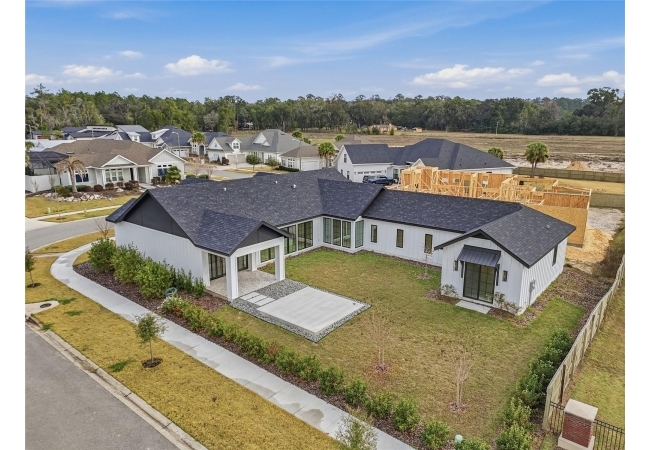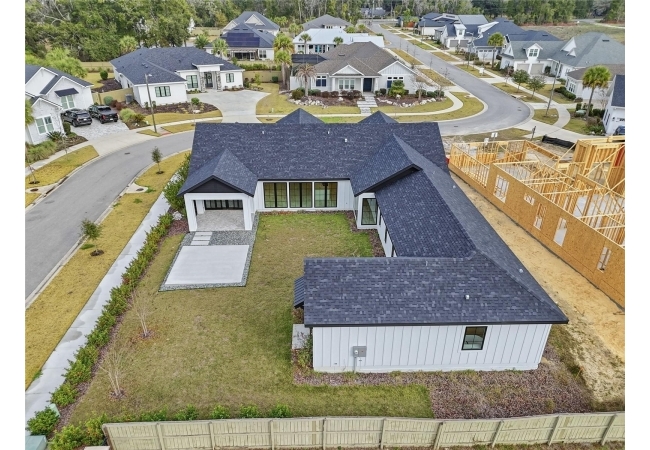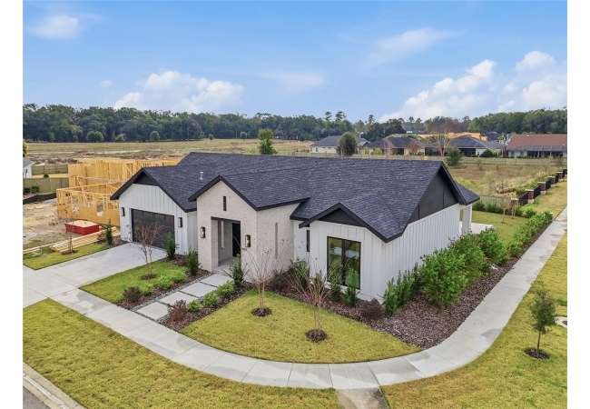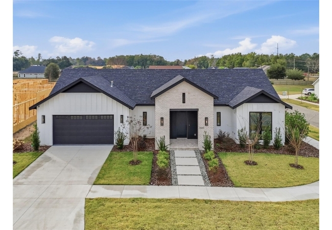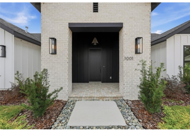 Welcome to the epitome of luxury living in the sought-after SW Gainesville neighborhood of Gloria’s Way, situated on a desirable interior lot offering added privacy and a peaceful setting. From the welcoming front porch, step inside to an inviting foyer where the brick-accented entry sets the tone with timeless character and elevated design. Just off the front entry, the fourth bedroom with its own en-suite bath offers incredible flexibility, making it the perfect private guest suite or an ideal home office or den. Continue into the heart of the home where engineered hardwood flooring and oversized black Andersen windows flood the main living areas with natural light and a bright, modern atmosphere. The living space is anchored by a stunning stone-accented fireplace, creating the perfect backdrop for cozy evenings and effortless entertaining. Just beyond, the designer kitchen is a true showpiece featuring KITH Kitchens cabinetry, KitchenAid appliances including an oversized gas range, stunning quartz countertops with a waterfall edge, and an oversized sink, all thoughtfully designed for both beauty and function. Tucked just off the main living area, the sunroom is perfectly placed at the back of the home with direct access to the patio and backyard, making it feel like a natural extension of the indoor-outdoor lifestyle and offering the flexibility to serve as a second living area, playroom, fitness space, or relaxing retreat. The owner’s suite offers a true escape, with an en-suite bath that includes a separate soaking tub and a large walk-in shower for spa-like comfort. Step outside to a backyard that will be fully fenced and designed to feel like your own private sanctuary, with the home centered around the outdoor space, showcasing expansive windows and an incredible mix of covered and open patio areas that invite you to relax, entertain, and enjoy Florida living year-round. Completing the home is an integrated security system with camera surveillance, offering peace of mind in a home where every detail has been carefully curated to exceed expectations and elevate your lifestyle.