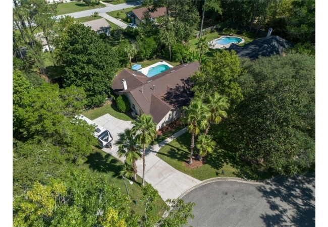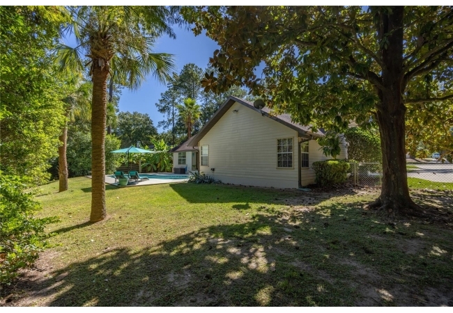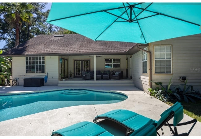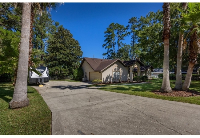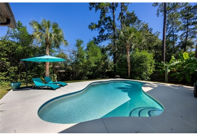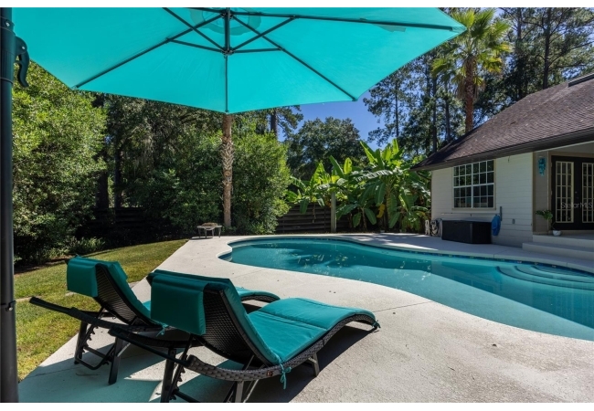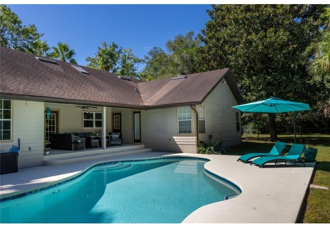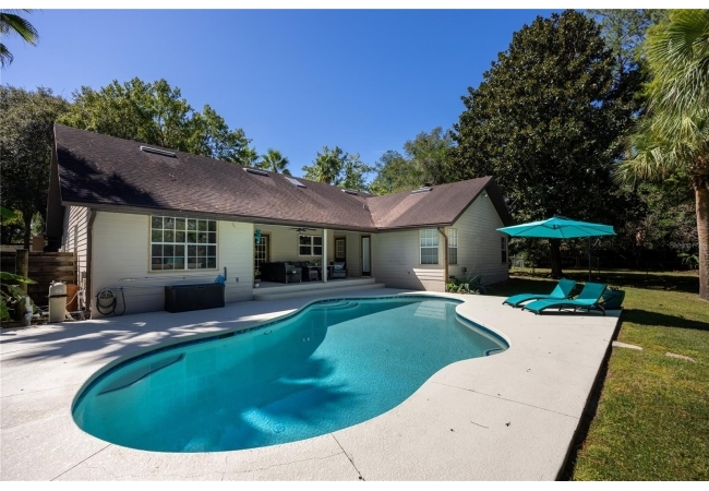 Tucked at the end of a quiet cul-de-sac in NW Gainesville's Hills of Santa Fe, this beautiful 3-bedroom, 2-bath home invites you to enjoy your own private backyard oasis—complete with a sparkling pool featuring a brand-new salt cell, filter and vacuum, a covered porch, and plenty of room to relax or entertain. Sitting on a fully fenced 0.43-acre lot, the property offers both privacy and space, with a separate fenced area perfect for pets or a garden, an extra-wide driveway ideal for parking boats or an RV, and a back gate for easy access.