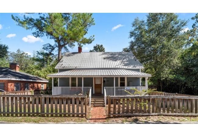 Step back in time and experience the character of this 1908 Gainesville home, perfectly positioned on the edge of the historic Duckpond district. Blending preserved charm with modern updates, this residence offers a rare opportunity for both homeowners and investors seeking a distinctive property in one of Gainesville’s most sought-after areas. From the welcoming full-width front porch, the home’s Southern-inspired architecture sets the tone. Inside, tall ceilings, original wood floors, and a cozy fireplace create a sense of warmth and authenticity. With four bedrooms (or three plus a dedicated office) and two updated bathrooms, the layout provides flexibility for a variety of living or workspace needs. The spacious, light-filled kitchen is the centerpiece of the home, offering generous room for dining and gatherings. Step outside to a private backyard with a wood deck—perfect for relaxing or entertaining beneath the shade of mature trees. A powered utility shed adds functional value, ideal for storage, a workshop, or a creative studio. Enjoy easy access to Downtown Gainesville and Midtown, with nearby shops, restaurants, and entertainment just minutes away. The property’s central location and proximity to major local destinations contribute to its strong long-term and short-term rental potential. With R1 zoning and a generous lot size, there may be potential to add an Accessory Dwelling Unit (ADU) or secondary structure (buyer to verify zoning and historic district requirements). Whether you’re seeking a move-in-ready historic home, an income-producing property, or a versatile addition to your real estate portfolio, this Gainesville gem delivers charm, functionality, and location in perfect balance. Schedule your private showing today to explore everything this timeless property has to offer.