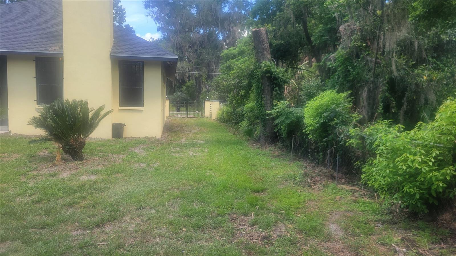 Fully fenced backyard with a gated side driveway for privacy and security.