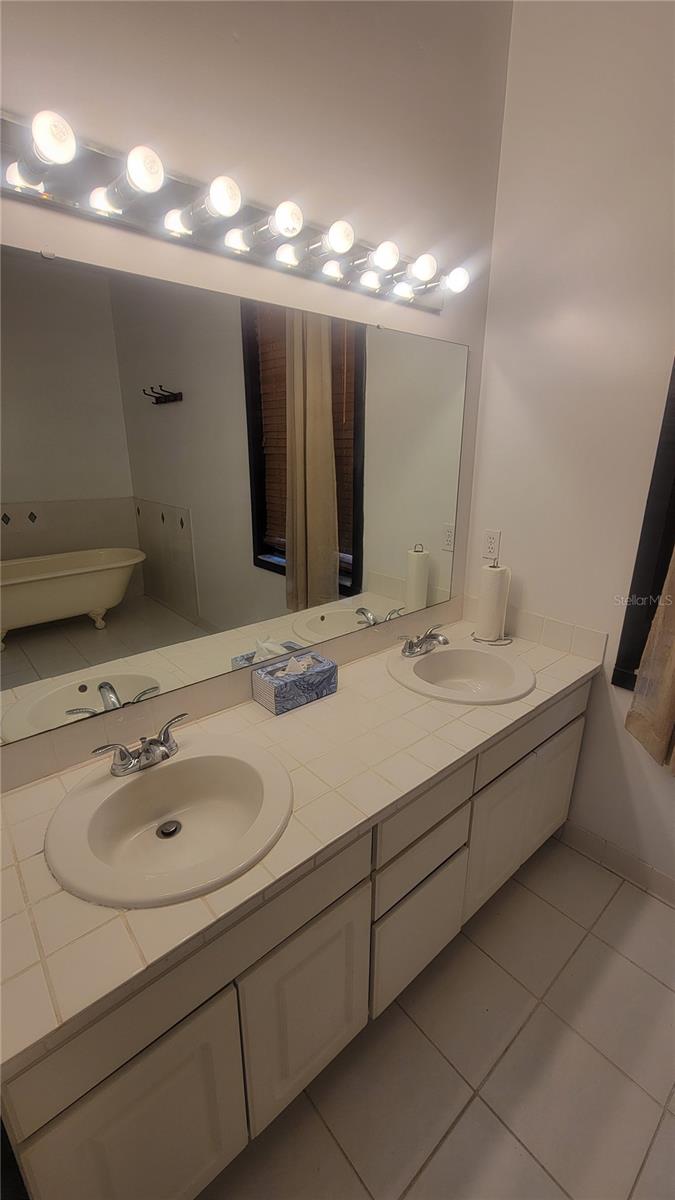 The 2nd Bathroom host dual vanities plus a "Bear Claw" tub with a private Lavatory.
