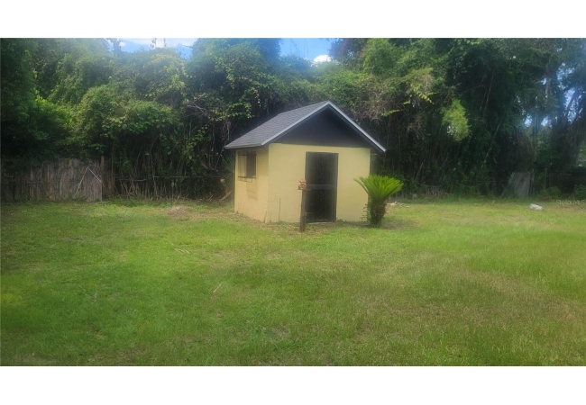 9,500 sq. ft. backyard with a concrete 10x15 shed