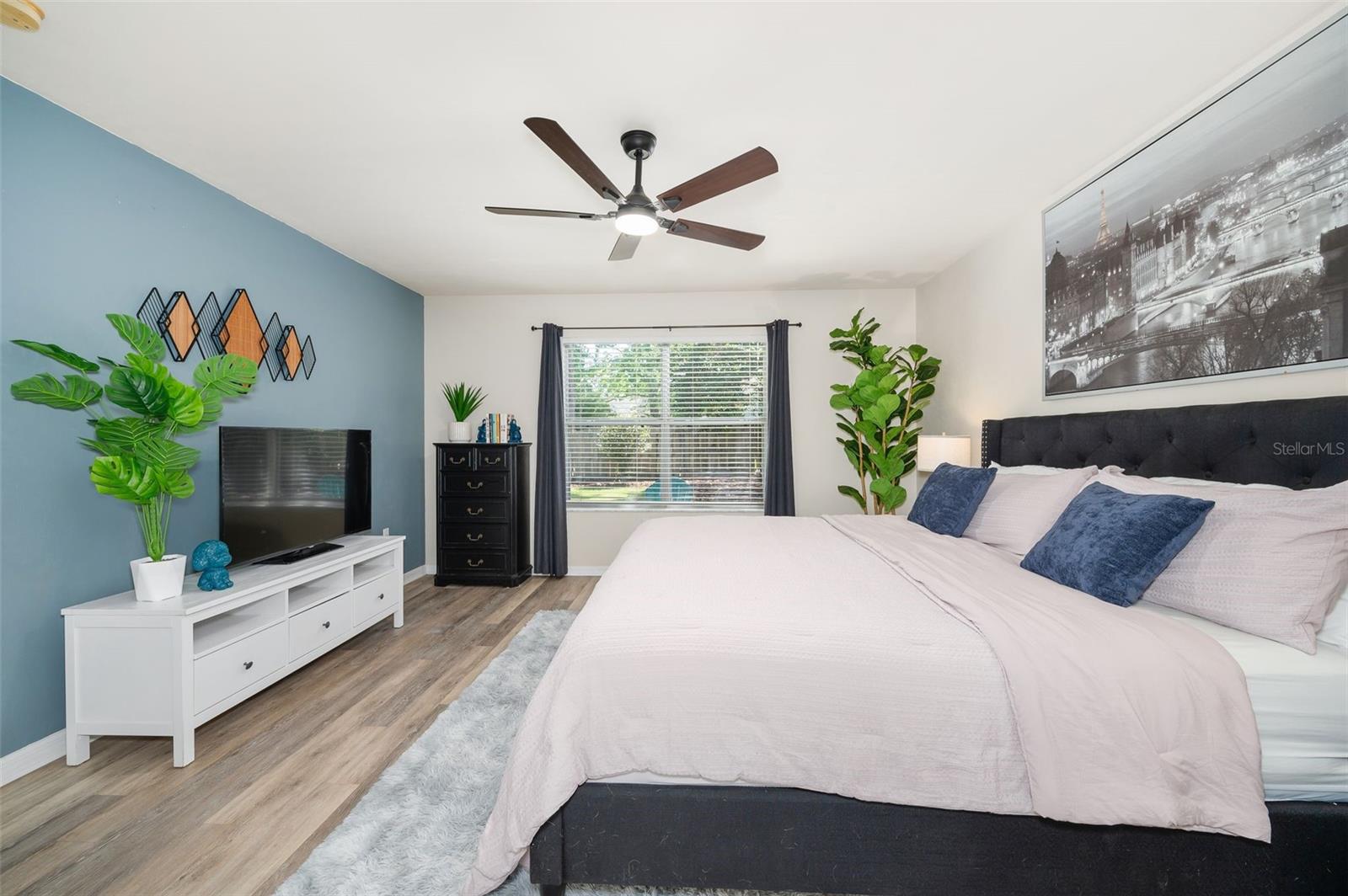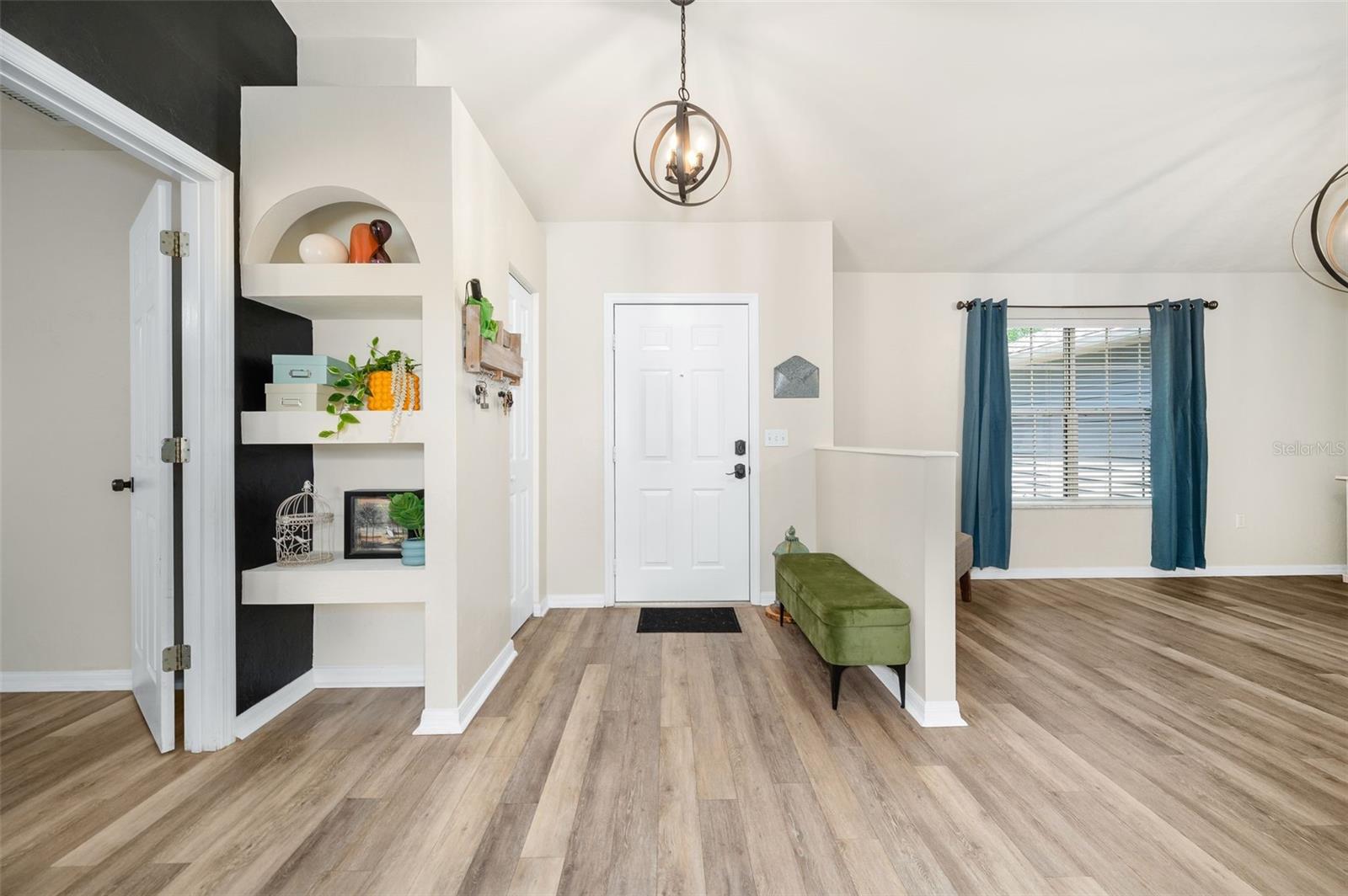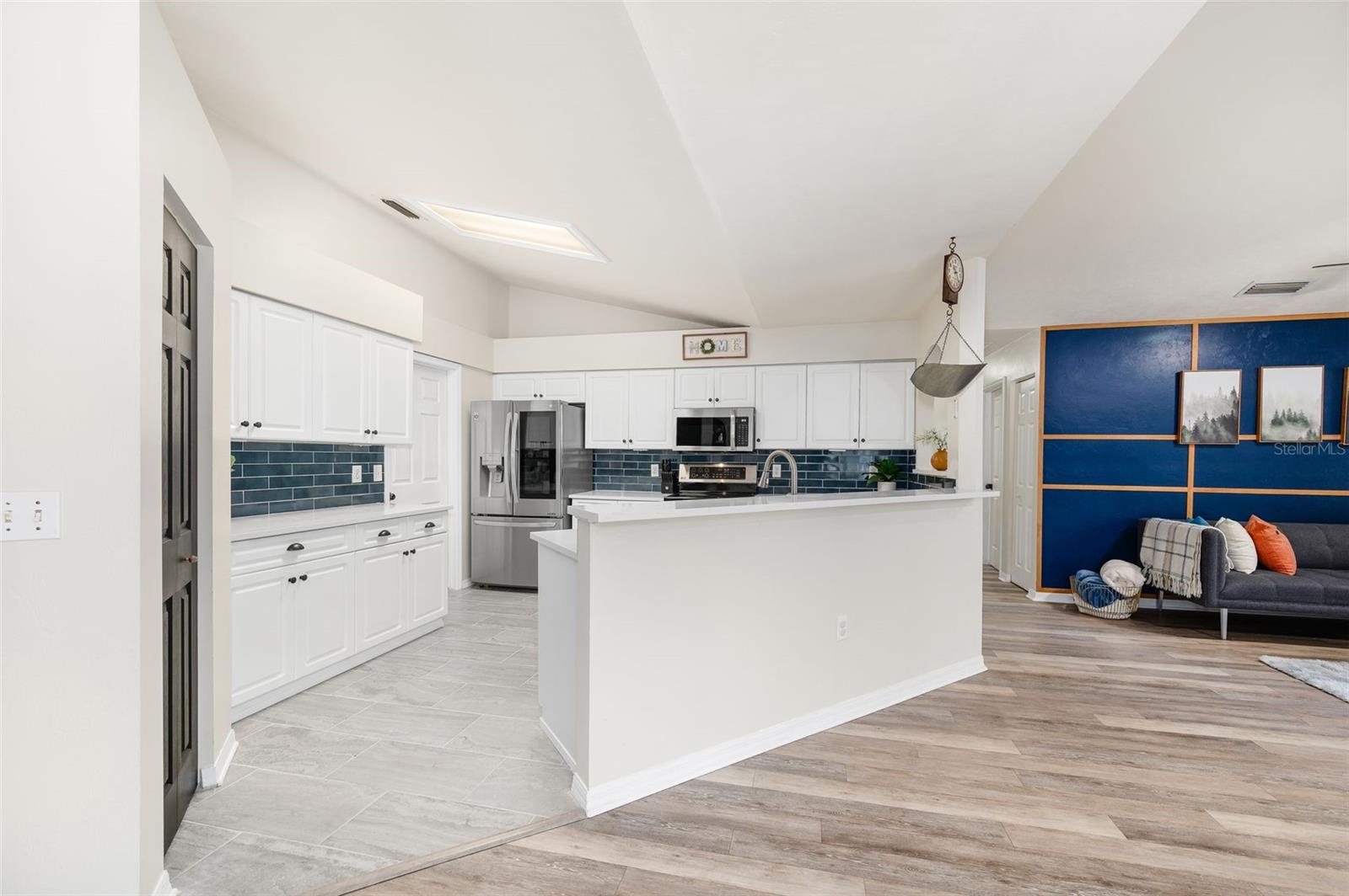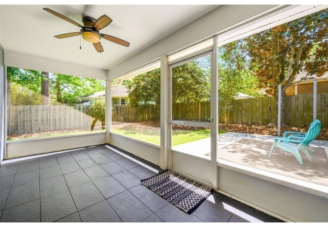 Looking for a fully renovated home in a great neighborhood with top-rated schools at a great price? Welcome to this beautifully updated 4-bedroom, 2-bath home in the highly desirable Eagle Point neighborhood, just a short walk to Hidden Oak Elementary. This move-in ready home has been thoughtfully upgraded throughout, including a newer roof (2024) and stylish finishes in every room. The fully remodeled kitchen features gorgeous quartz countertops, a ceramic subway tile backsplash, new tile flooring, and ample workspace—perfect for both everyday living and entertaining. Enjoy a spacious split floorplan with the primary suite tucked away for added privacy. The completely renovated primary bathroom offers a spa-like retreat with double vanities, a walk-in shower, jetted tub, and walk-in closet. The home boasts luxury vinyl flooring throughout with beautiful tile in the kitchen and bathrooms—no carpet anywhere. Multiple living and dining spaces include a formal dining room with a charming coffee bar and cozy reading nook, a breakfast nook, and a bright living room with a cozy wood-burning fireplace and large windows overlooking the backyard. Step outside to a screened-in patio with fresh tile, perfect for relaxing or entertaining. The fully fenced yard has been refreshed with new sod and mulch and backs up to a peaceful neighborhood green space. Mature trees provide shade and privacy without overhanging the roofline. Additional highlights include an oversized two-car garage, fiber optic internet availability, and a central location with convenient access to shopping, dining, and I-75. Ideally situated near the University of Florida, Santa Fe College, Shands Hospital, North Florida Regional Medical Center, the VA Hospital, and just minutes from the popular Town of Tioga. As a fun bonus, this neighborhood is a fun, festive spot come Halloween. This home has been meticulously maintained and is truly move-in ready—don’t miss your opportunity to make it yours!
