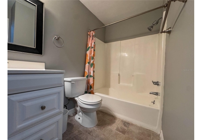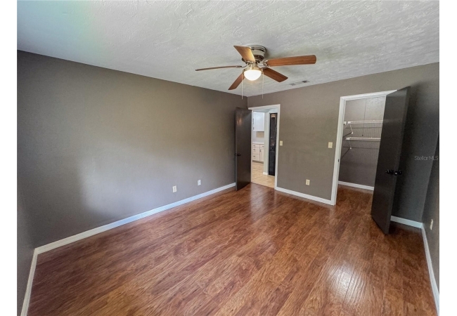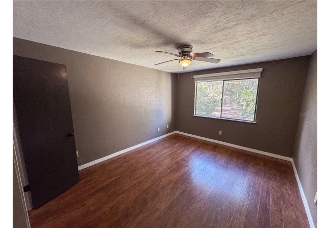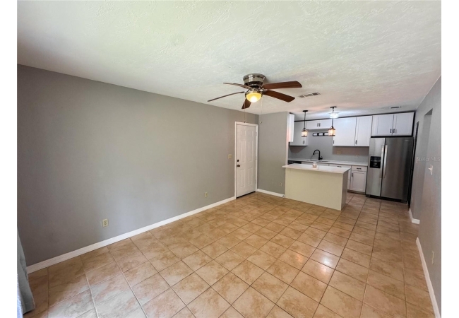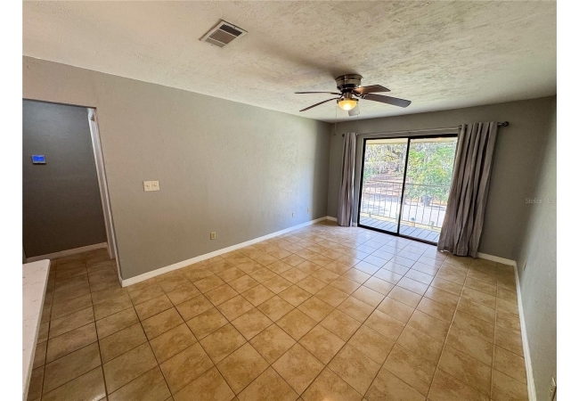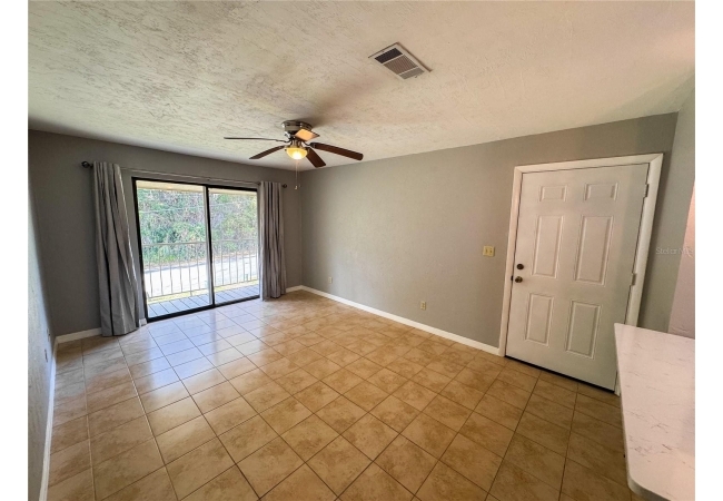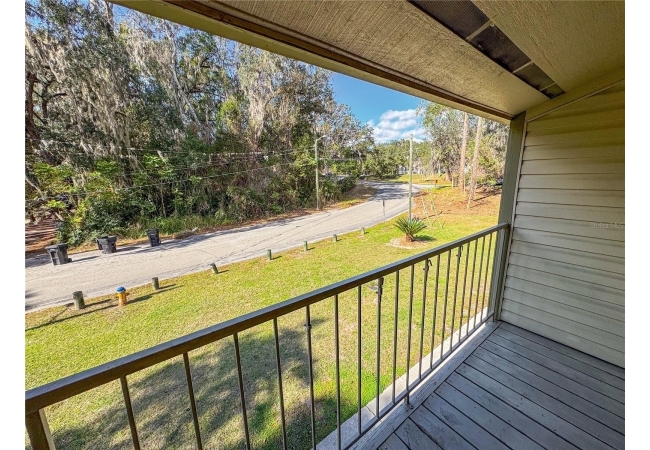Tumblin Creek offers a peaceful, wooded setting with mature trees, ample shade, and a serene creekside atmosphere. The condo features a renovated kitchen with breakfast bar, white shaker-style cabinets, stainless steel appliances, and solid surface countertops. There is tile and engineered hardwood flooring throughout (no carpet) as well as a spacious bedroom with walk-in closet. The living room and bedrooms have been upgraded with ceiling fans, a must have for FL summers. Enjoy relaxing on the covered balcony, and appreciate the privacy of a top-floor unit with no neighbors above.