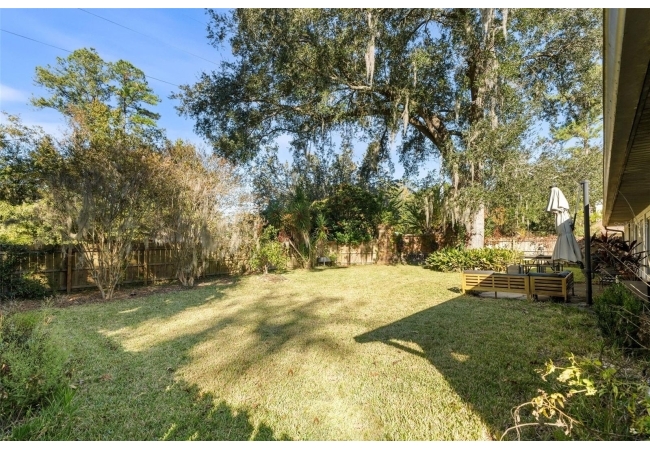 Pulling up to this corner lot, the first thing you’ll notice is the space and privacy — no neighbors behind you, a fully fenced yard filled with greenery, colorful landscaping, and even your own orange tree. Gutters and newer fence ensure no repairs and a Magnolia tree in the front yard