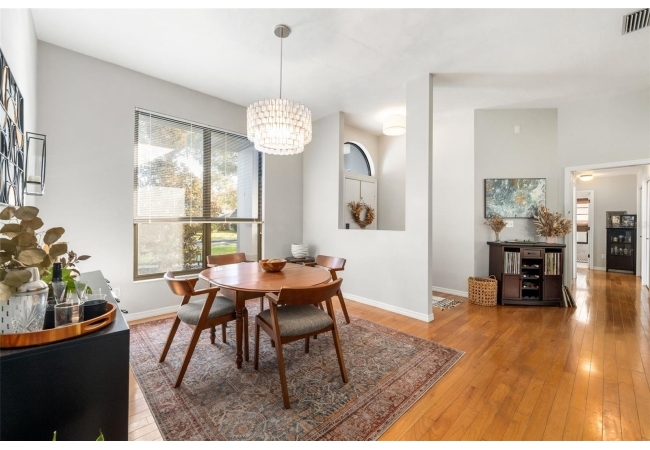 Step inside and you’re greeted by real hardwood floors that flow through the main living areas, giving the home a cozy, welcoming feel. To the right, you’ll find a formal dining room open to the family room with french doors that open to the sunroom.