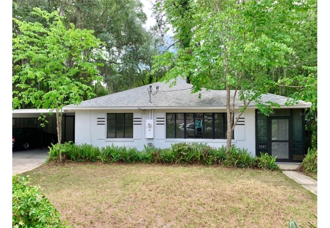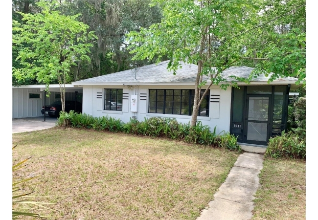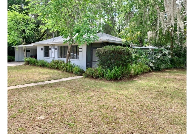 One or more photo(s) has been virtually staged. Great home in Northeast Gainesville just East of the Duckpond. This wonderful home has had many upgrades done in recent years. 2022 new shingled roof. 2018 roof over carport, 2023 New electrical system, 2022 New gas water heater. The home has been freshly painted inside and out. New LVP flooring installed in 2024. Home previously had new water supply lines installed. The home has a large back living room with lots of windows for natural light. The kitchen still retains the original metal cabinets that were refaced years ago. The bathroom also retained its vintage charm with the original subway tile. The home has an oversized double carport which isn't quite as common for the area. There is a laundry room off the breezeway which also has extra storage space. The backyard is spacious and ready for some new landscape design. The home has a front screened porch with the old Gainesville luxury of mail delivered to the mailbox on the porch mail slot. The back porch/patio is perfect for a grill out day or relaxing after work. Close to the Duckpond, shopping, Citizen's field and Tom Petty NE Park, this home is a gem waiting for its new owners and the finishing touches.
