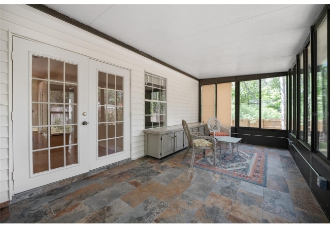 Step inside to find stunning oak wood flooring, vaulted ceilings, and a spacious living area centered around a charming wood-burning fireplace. French doors lead seamlessly into a newly added enclosed 200 sq ft Florida Room—perfect for relaxing, entertaining, or enjoying year-round natural light.