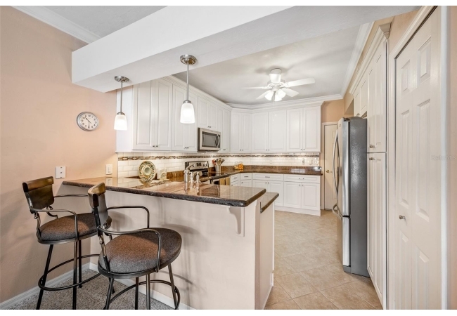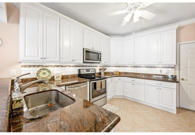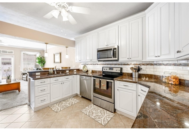 Maintenance free living in this spacious 3 bedroom 2 bath end unit with a 2 car garage. Kitchen has been updated with tall cabinets and granite countertops. Formal dining room. Large laundry room with sink, washer, dryer and extra cabinets. Master bedroom is oversized with walk in closet. Updated marble countertops in the bathroom which features stand up shower and soaker tub. New roof. Back screened porch is perfect for entertaining. Community clubhouse and pool has a gym and a steam room. Convenient to I-75 and easy access to UF, Shands, the VA, grocery and nearby restaurants. HOA covers all exterior maintenance and lawn care.