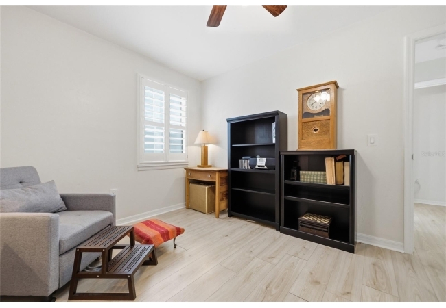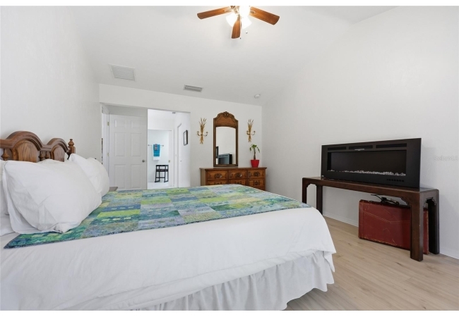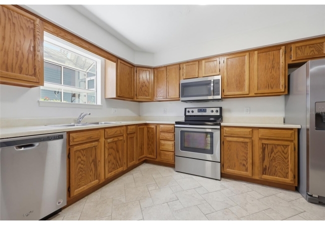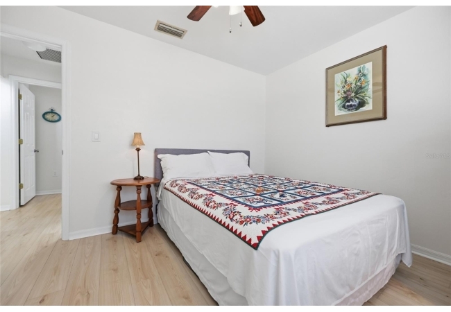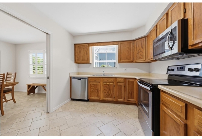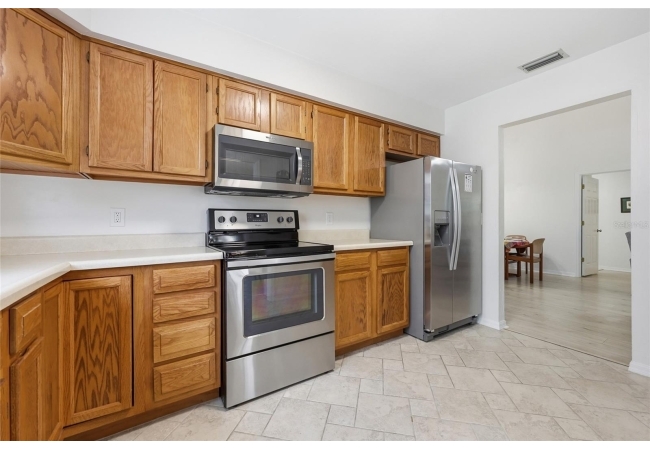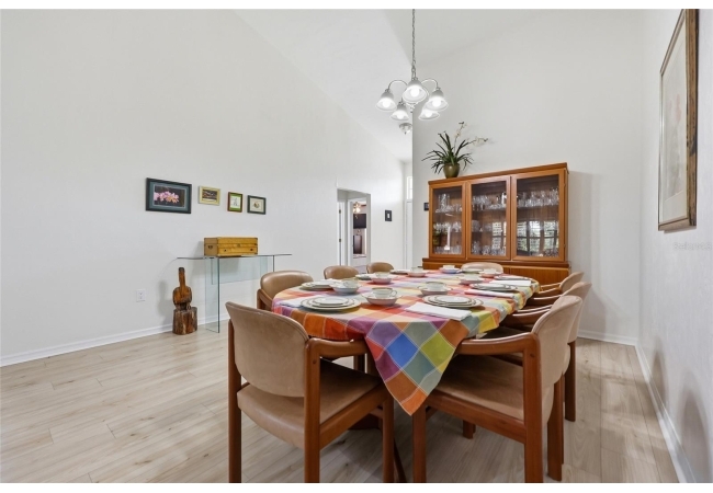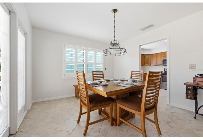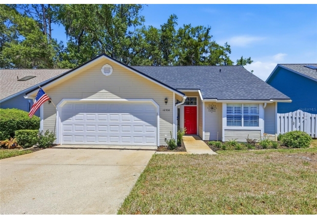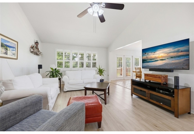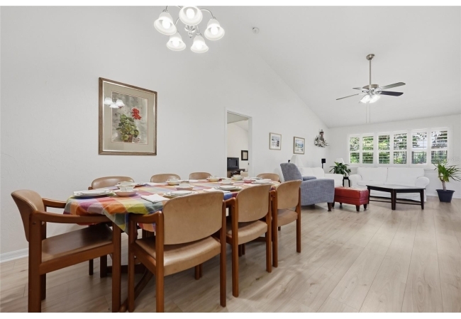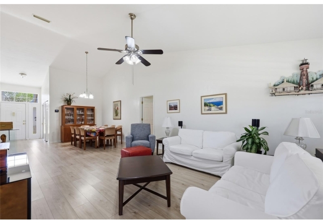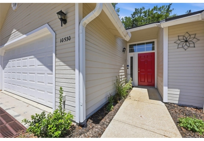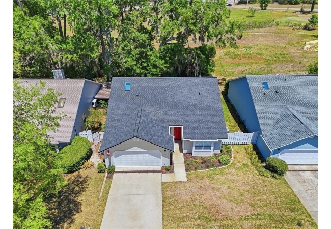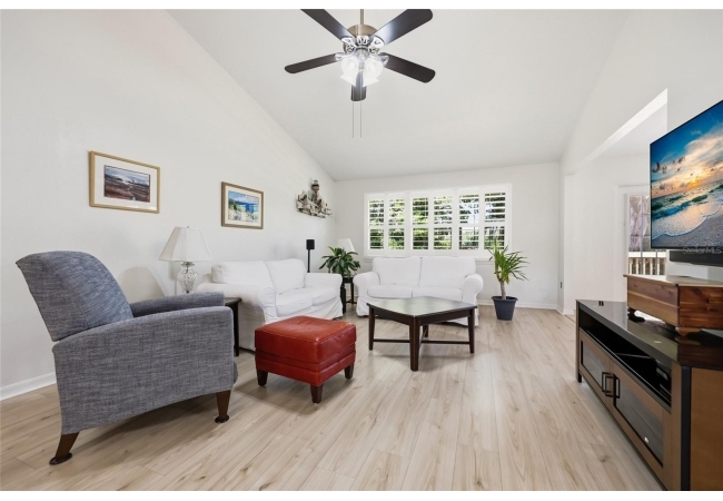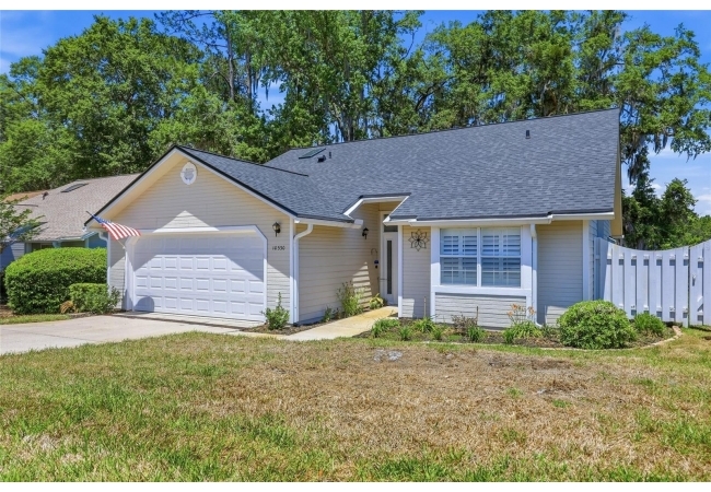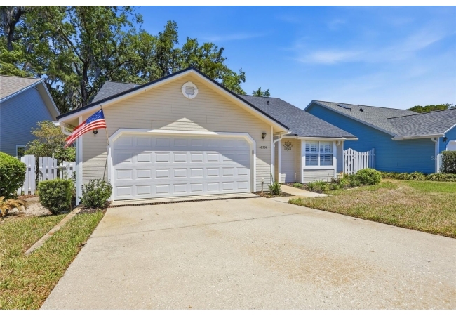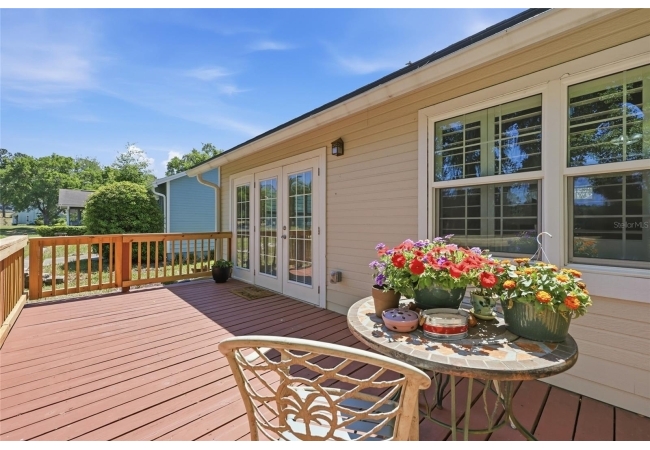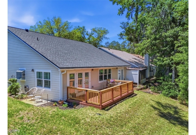Easy living takes center stage in this beautifully updated 3-bed, 2-bath home located in the gated community of Meadowbrook. Offering 1,571 sq ft of light-filled space, the home welcomes you with soaring vaulted ceilings and an open, airy atmosphere from the moment you step inside. Designed with accessibility in mind, the residence features wide doorways and a thoughtful, wheelchair-oriented layout for effortless movement. The interior is entirely carpet-free, featuring durable laminate and large-format tile flooring throughout. The heart of the home unfolds into a versatile layout featuring both a formal dining area and a sun-drenched casual breakfast nook. The well-appointed kitchen, complete with stainless steel appliances and an abundance of cabinetry, serves the dining spaces with ease. From the casual dining area, French doors lead you directly to a peaceful back deck—perfect for an indoor-outdoor lifestyle. While the split-bedroom floor plan ensures privacy, the primary suite is a true retreat that boasts outdoor access, a generously sized walk-in closet with hanging space and built-in shelving, and a renovated bathroom featuring a luxury walk-in shower with floor-to-ceiling marble-style tile. Additional highlights include plantation shutters, a spacious two-car garage, and ample storage throughout. Residents of Meadowbrook enjoy a vibrant lifestyle with access to a clubhouse, fitness center, pool, and tennis courts, with the added peace of mind that the gated community covers exterior maintenance and lawn care. Perfectly positioned near NW 39th Avenue for quick access to I-75, shopping, and dining, this pristine home offers both comfort and convenience. Schedule your private tour today to experience this haven firsthand!