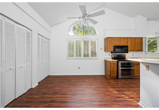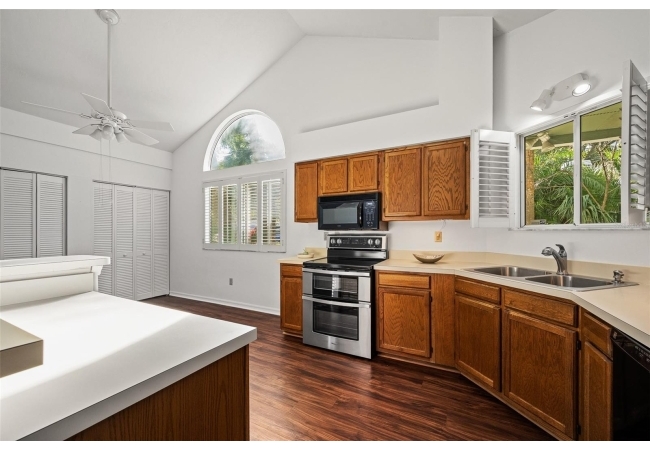 Serene Corner Unit Retreat Backing to West End Community Park! Welcome to your private oasis nestled against the lush backdrop of West End Community Park. This beautifully landscaped corner unit offers the perfect blend of comfort, style, and convenience. Featuring 2 spacious bedrooms and 2 bathrooms, the home has been freshly painted and boasts brand-new plush carpeting in the bedrooms, complemented by elegant LVP wood flooring throughout the main living areas.