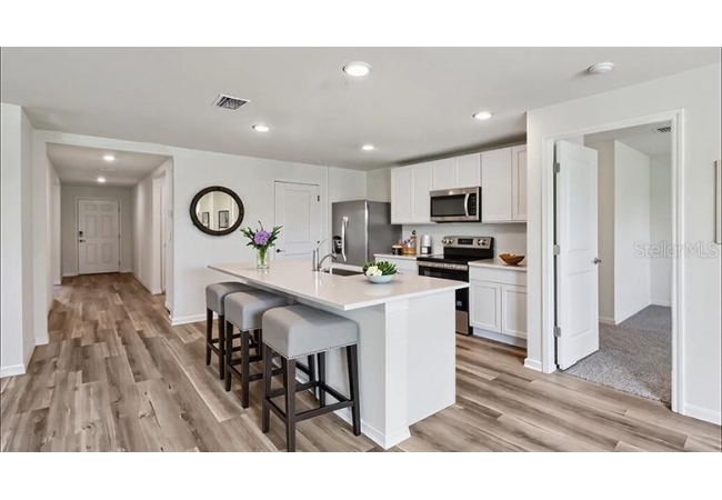 One or more photo(s) has been virtually staged. Under Construction. Indulge in modern living with this 3-bedroom home featuring an open layout and stainless-steel appliances. The layout of the home connects the living, dining, and kitchen areas, creating a spacious and inviting atmosphere. The kitchen, equipped with stainless-steel built-in dishwasher, range, and microwave, becomes a stylish focal point, blending form and function. The laundry room comes equipped with a washer and dryer hook up. With three bedrooms thoughtfully integrated into the layout, this home offers both comfort and contemporary elegance. The primary bedroom features an ensuite bathroom and walk-in closet. The Aria is complete with a state-of-the-art smart home system. Pictures, photographs, colors, features, and sizes are for illustration purposes only and will vary from the homes as built. Home and community information including pricing, included features, terms, availability and amenities are subject to change and prior sale at any time without notice or obligation. CRC057592.