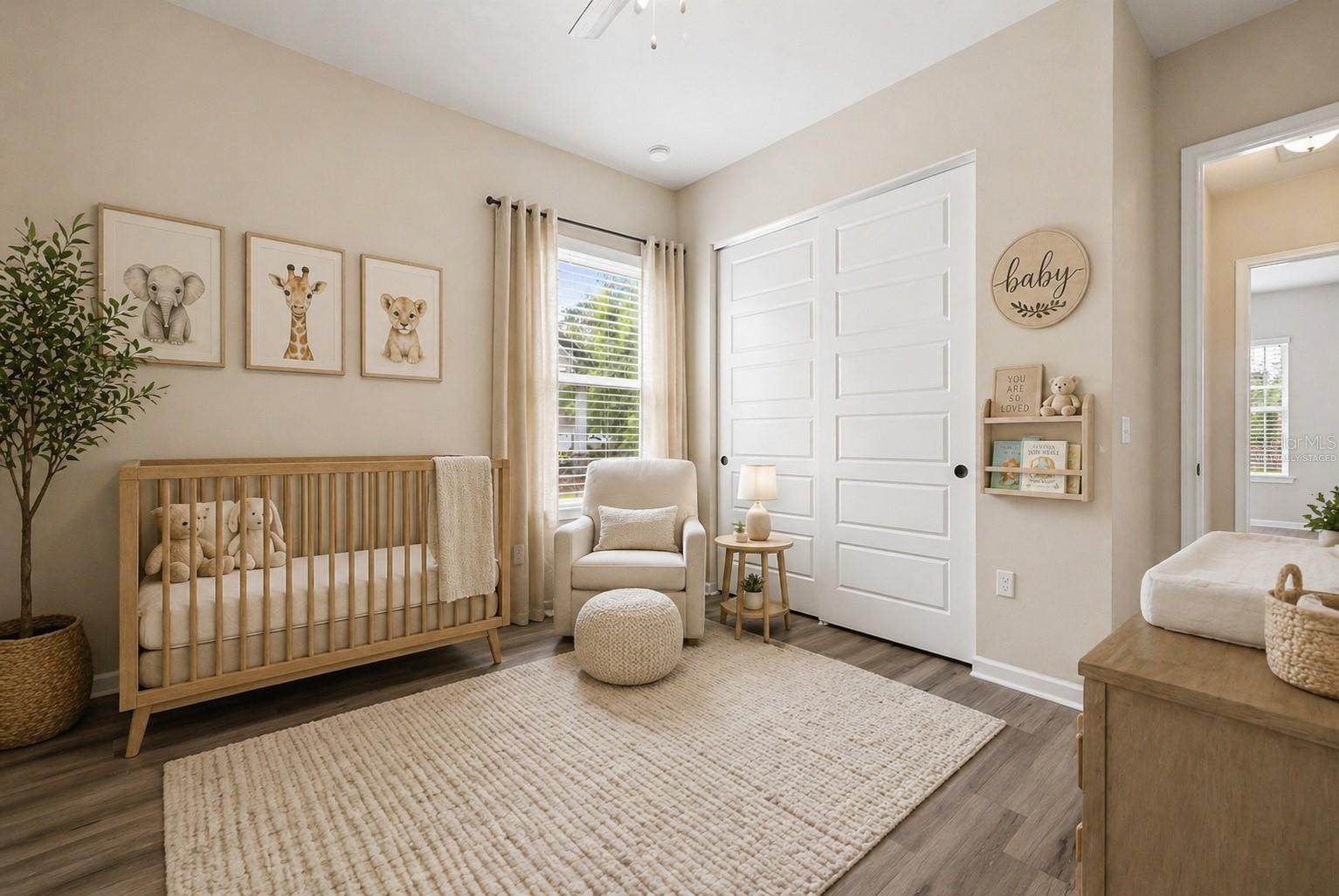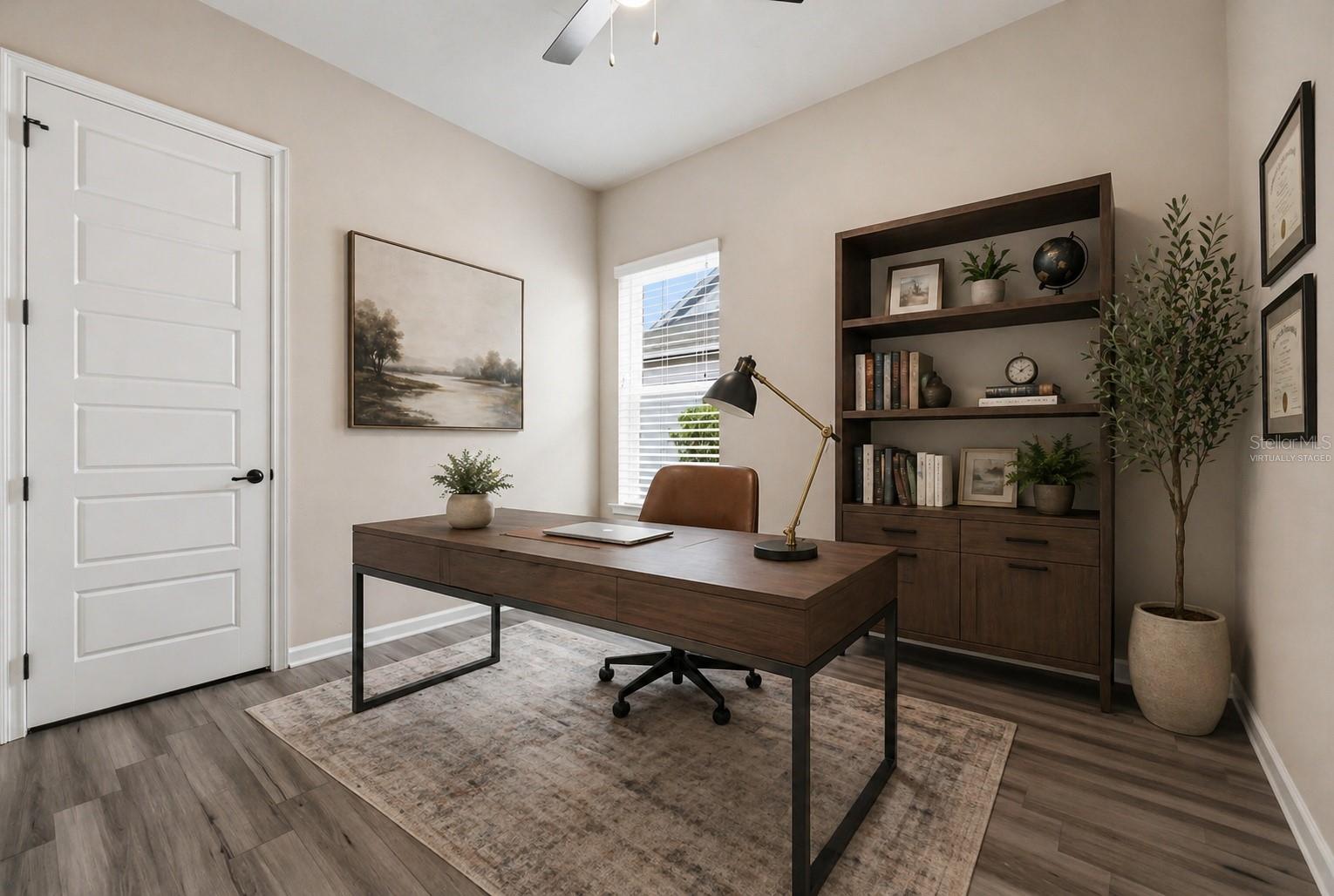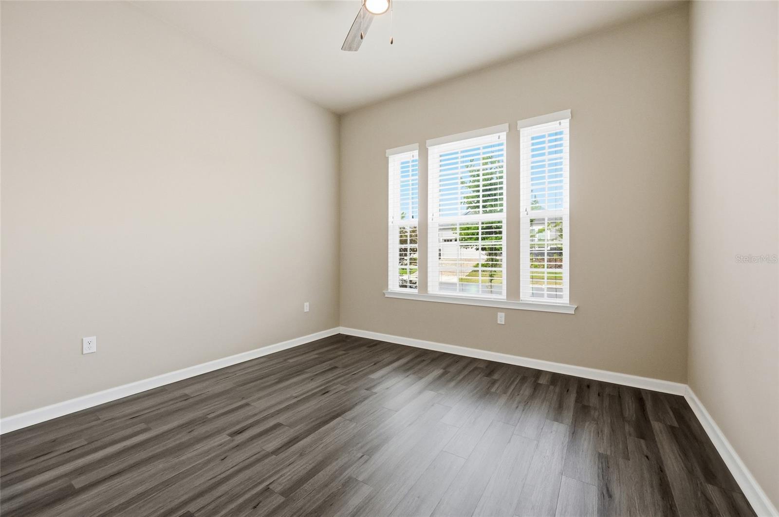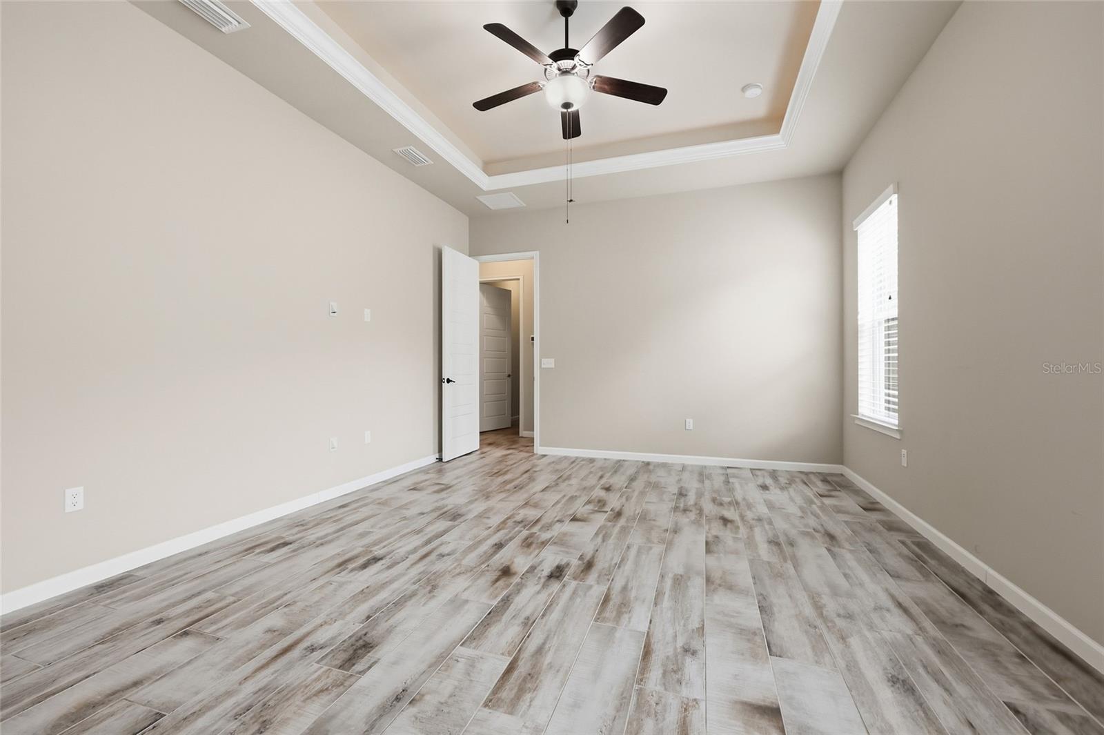 On the opposite side of the home, the primary suite serves as a comfortable retreat, complete with a spacious walk-in closet, large shower, dual vanities, and a separate water closet. A nearby fourth bedroom offers flexibility as a study, office, or additional guest space.
