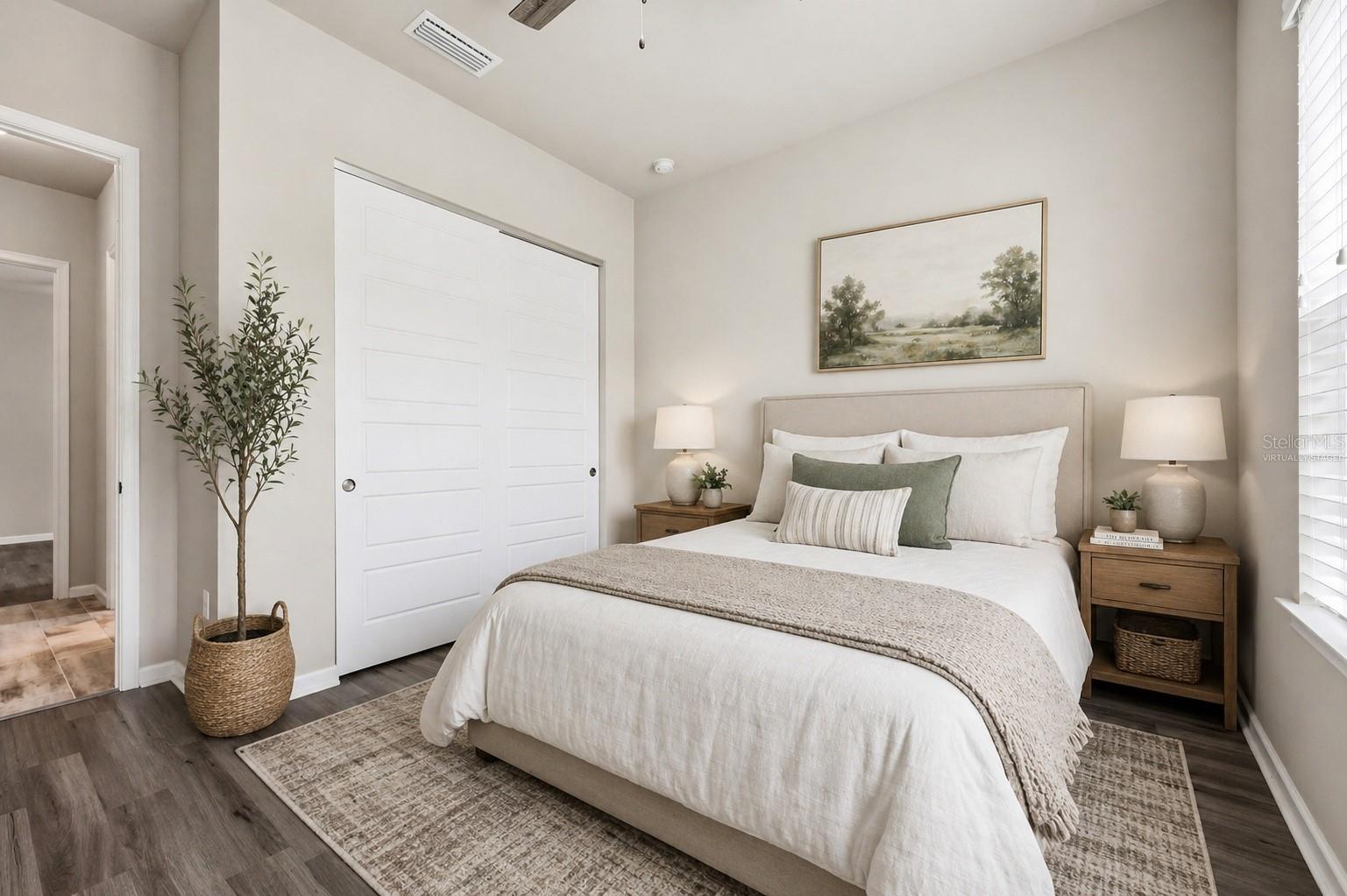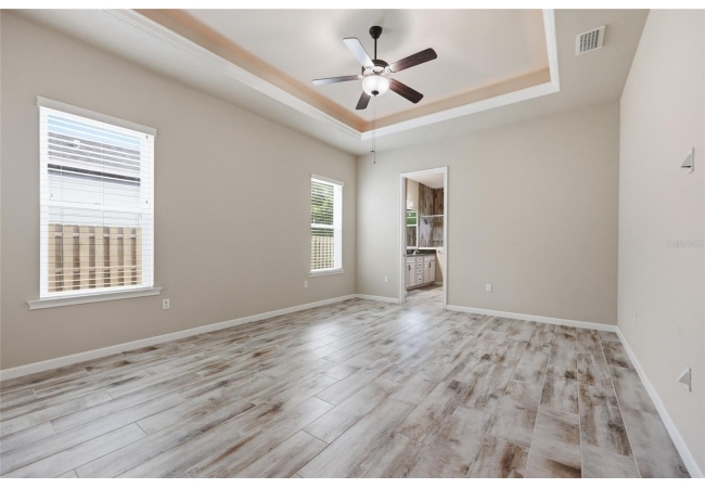 With no carpet in sight, tile and laminate flooring run throughout the home and bedrooms, offering durability and a clean, cohesive look.