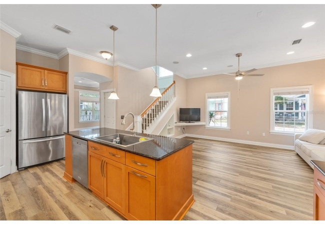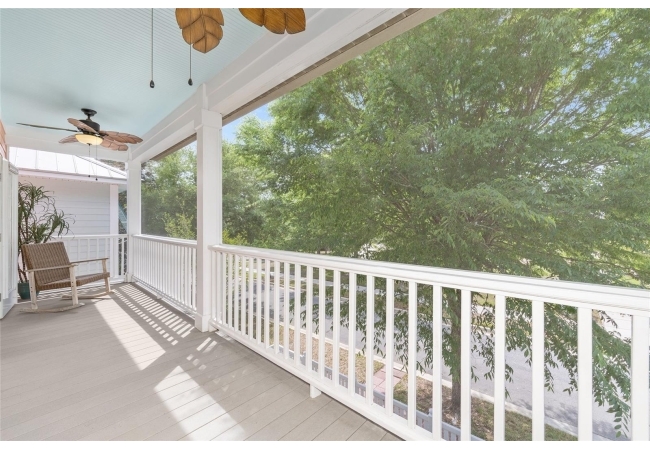 The primary suite offers a walk-in closet and en-suite bathroom, while the upstairs laundry room adds convenience to keep life running smoothly. Step outside onto the private, fully-screened second-story balcony and everything slows down in the best way. This is Florida living at its finest — warm evenings, gentle breezes, and the kind of relaxed outdoor lifestyle that makes this home feel like a true retreat.