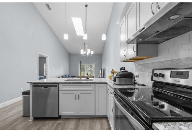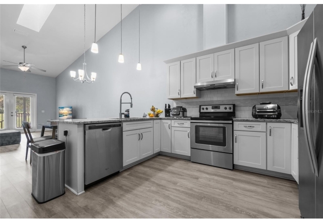 Step inside this beautifully designed 2 bedroom, 2 bath home PLUS flex space, where a neutral color palette and thoughtful upgrades create a warm and inviting atmosphere that complements any décor style. The spacious, open kitchen is a true joy for cooking and meal prep, showcasing quartz countertops and a thoughtful layout that seamlessly connects to the main living area. Vaulted ceilings—an upgrade selected during construction—enhance the sense of space and airiness, while a skylight in the living room fills the home with soft, natural light, making the heart of the home feel bright and expansive.