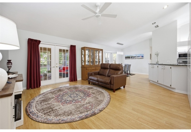 This home is situated on an oversized corner lot with mature Florida landscaping.