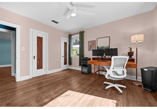 Located less than 1 mile from the University of Florida, this vintage charmer is ready for her new owner! Situated on a quarter acre in the heart of Gainesville, this 3bd/2ba, 1696sf bungalow was built in 1938 and is packed with history and character! Original hardwood flooring, vintage tile, archways, interior French doors, original fireplace, exposed brick, an attached garage - so cute! The kitchen has been completely remodeled and opens up to the family room. A covered deck has been added to the back of the house for outdoor living. And there are mature fruit trees and a chicken coop to boot! The neighborhood has a newsletter, the occasional potluck, and the Oakview Park is just two blocks away. So much character and so close to both UF and downtown Gainesville! Roof is 2015. Kitchen remodel, electrical service/panel upgrade and new windows in 2022.