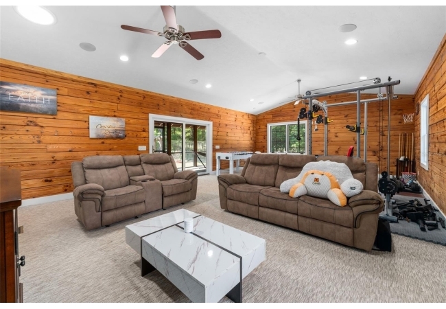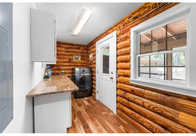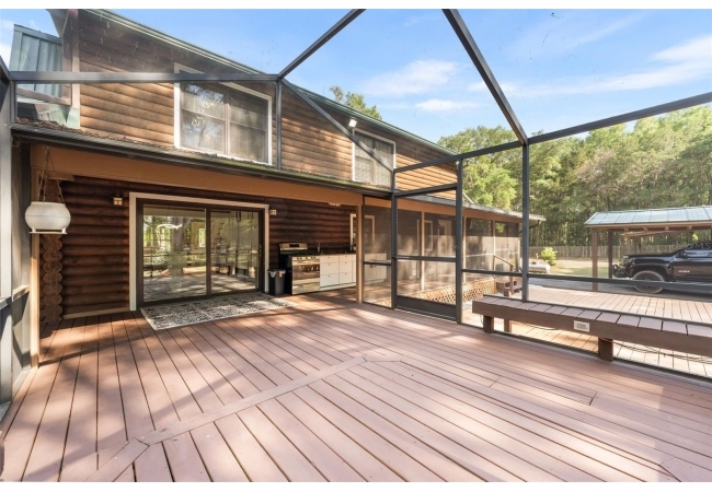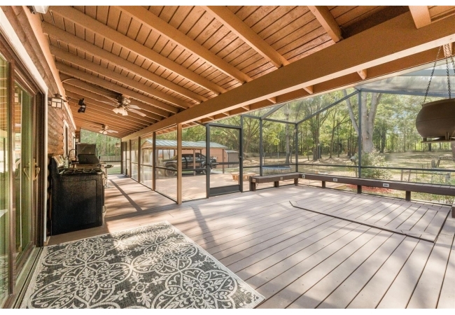 4 bedroom, 2.5 bath modern log cabin styled home is for the outdoor enthusiast and has everything you could need, including a square foot workshop, a dedicated boat storage / washing area, multi car carport, a fire pit, massive full length screen porch and outdoor kitchen… and we haven’t even made it inside.