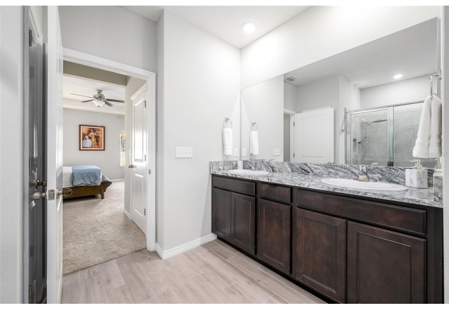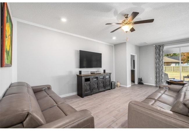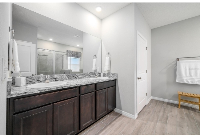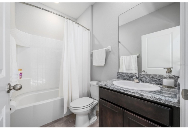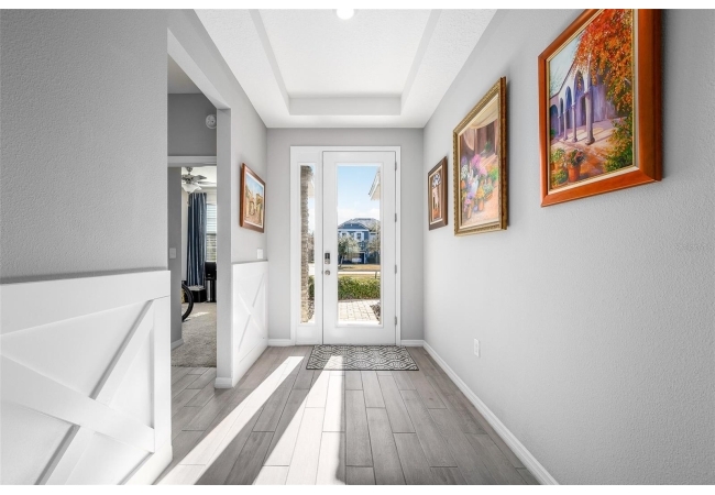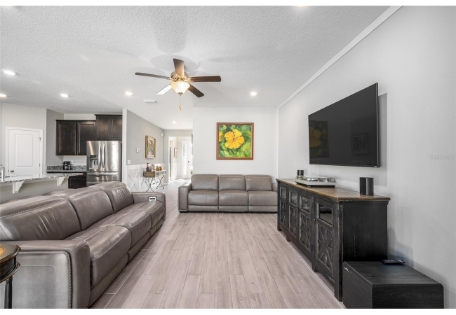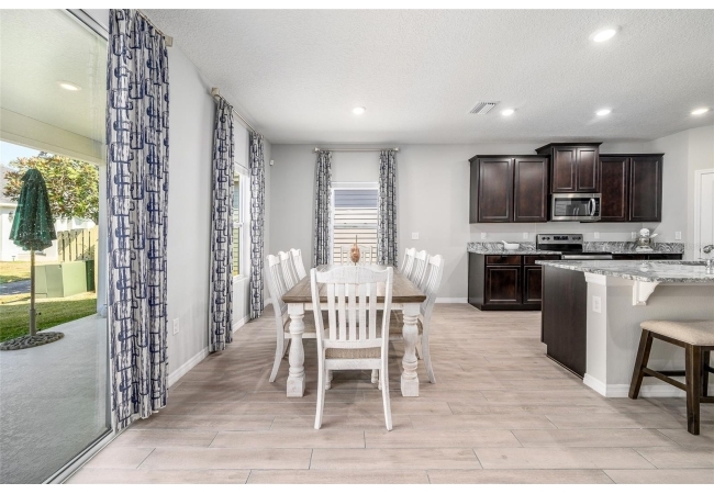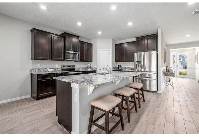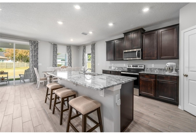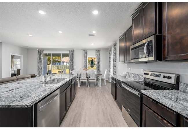 Your dream home is here! A beautiful floor plan with a spacious kitchen overlooking large living and dining areas that flow to a covered lanai—perfect for outdoor dining. Featuring 4 bedrooms, 2 and 1/2 baths include granite and stainless steel appliances in the kitchen, upgraded finishes, and gorgeous flooring throughout the main area. Two front bedrooms share a full bath, plus a powder room and laundry off the garage. A beautifully upgraded DR Horton model home designed for comfort and convenience. A perfect move in ready home! Conveniently located close to a community pool and children playground area, Publix supermarket, Aldi, Walgreens, ACE Hardware store, restaurants and many other stores.