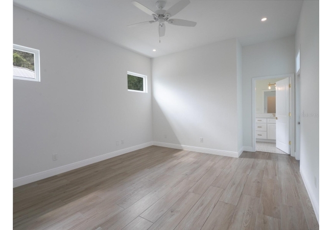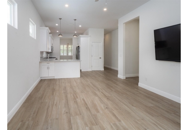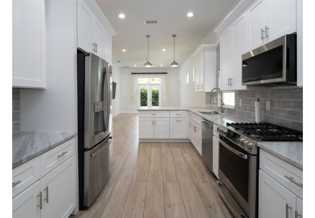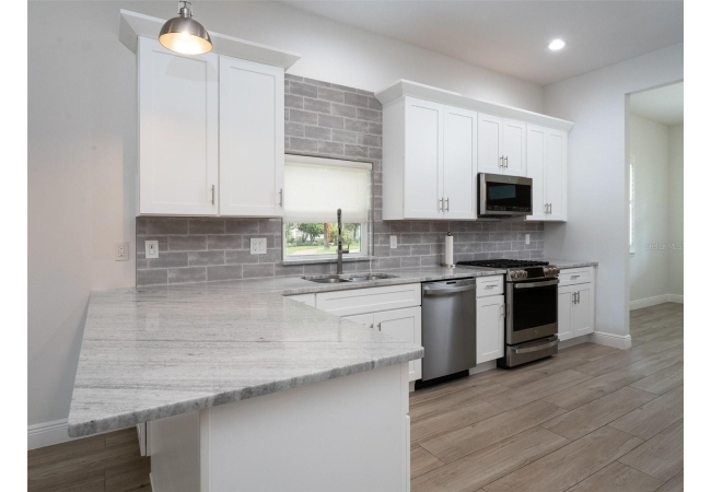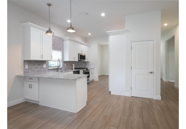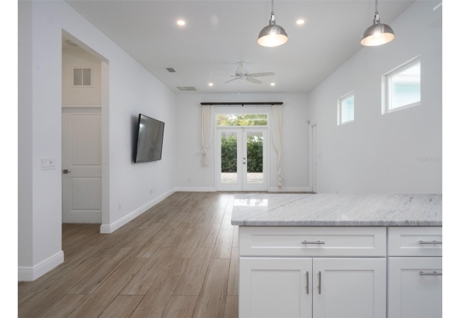 Inside, high ceilings and abundant natural light create a bright, airy feel, while durable wood-look tile floors add both style and practicality. The kitchen is a true highlight of the home—fresh, modern, and finished with high-end details that elevate the entire space. Both bathrooms have been beautifully updated, and the home’s open layout makes it ideal for entertaining or simply enjoying the day-to-day. ~~
