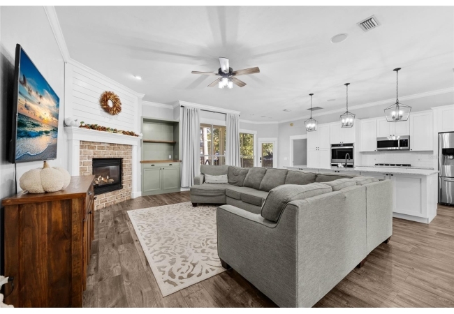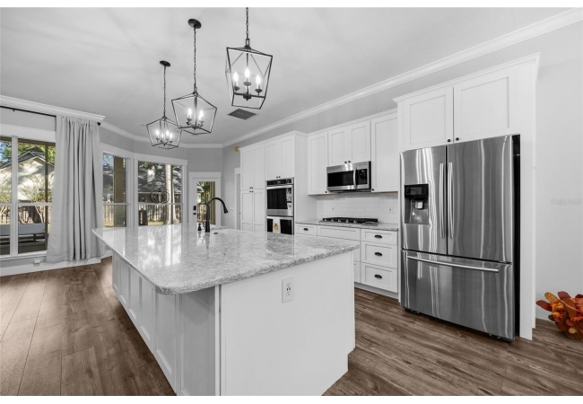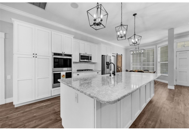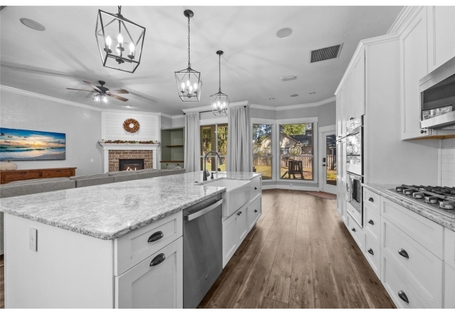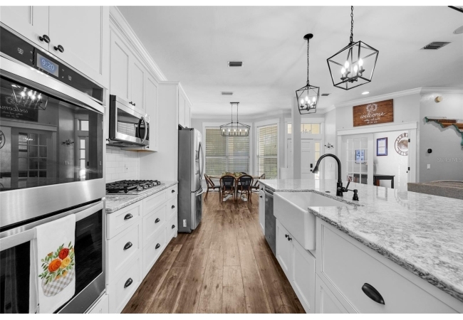 The heart of the home is the fully remodeled kitchen, featuring luxurious Cambria countertops (single slabs), extra cabinetry storage in the island, stainless steel appliances, a double oven, and a gas cooktop—a dream setup for any home chef. Enjoy the elegance of crown molding, upgraded door and window trim, and Shaw vinyl plank flooring throughout—no carpet!