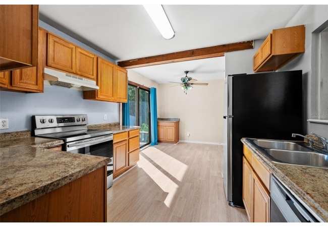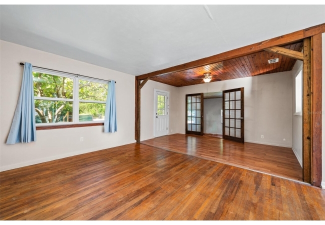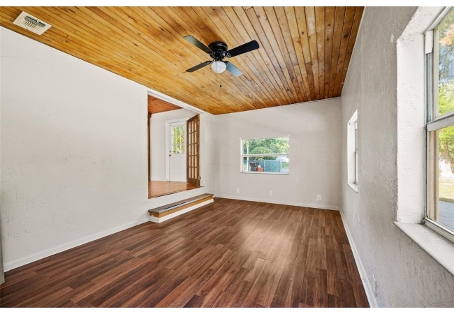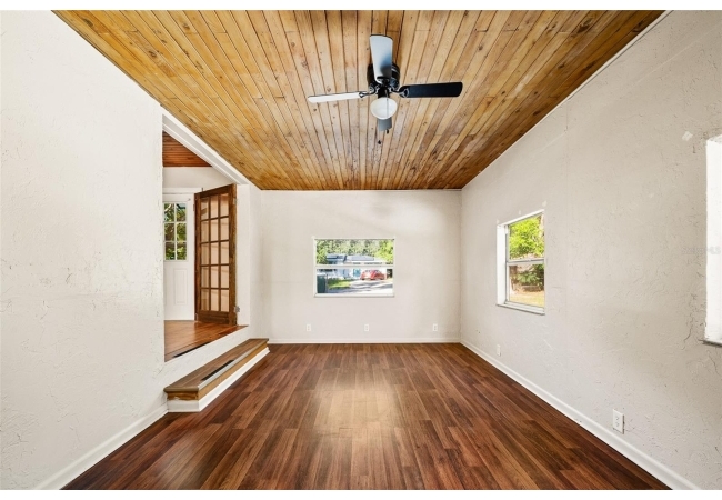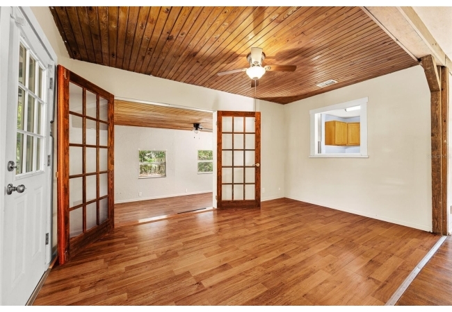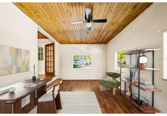This beautifully maintained 2-bedroom, 1-bath home offers a wonderful blend of original features and thoughtful updates. Built in 1954, the home showcases original wood flooring throughout most of the living space and added wood ceilings in two rooms for a warm, inviting touch. The updated roomy kitchen includes stainless steel appliances and modern finishes, and opens to a great sized dining space.