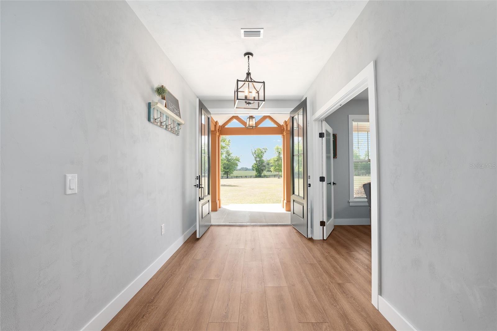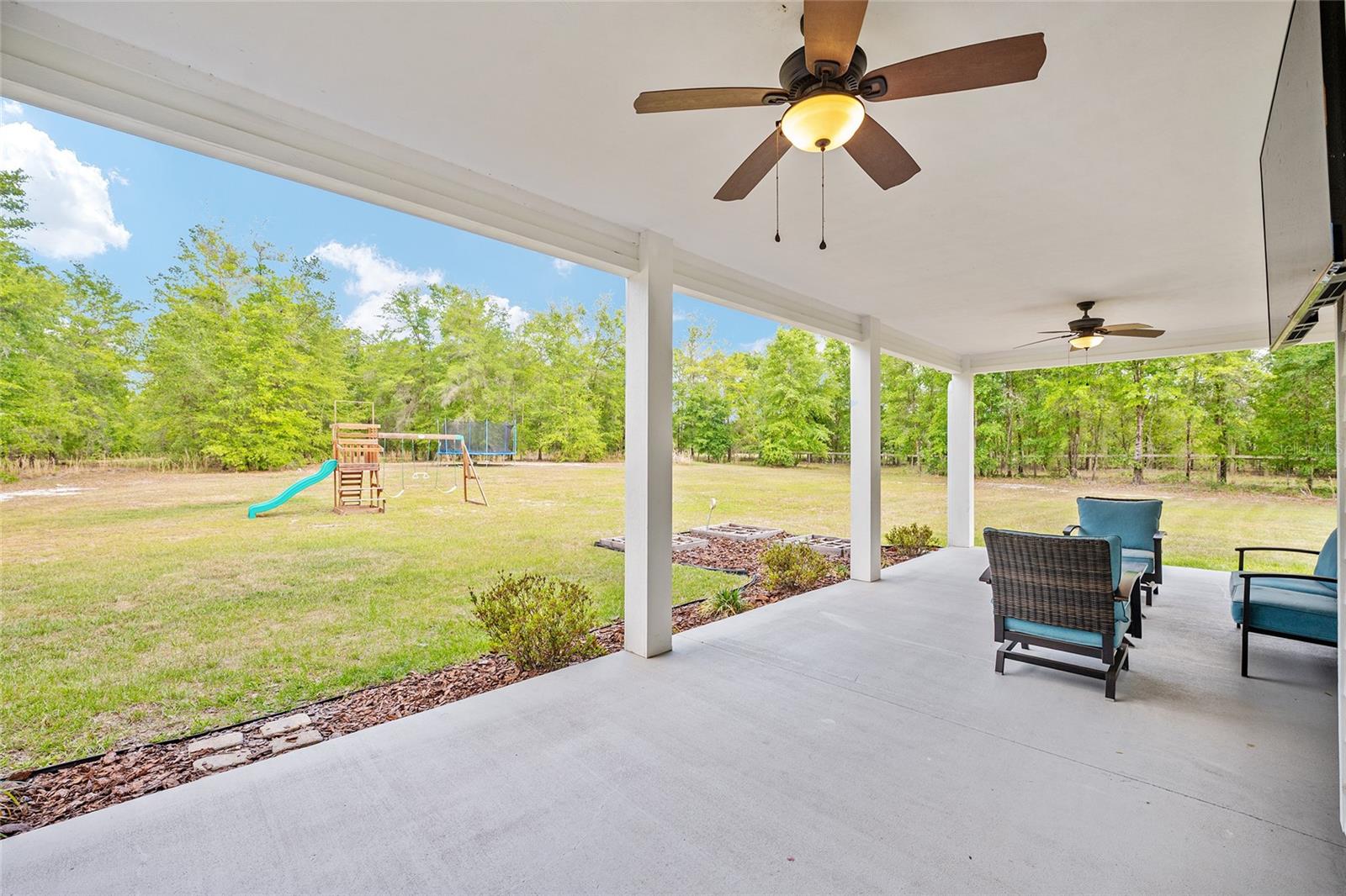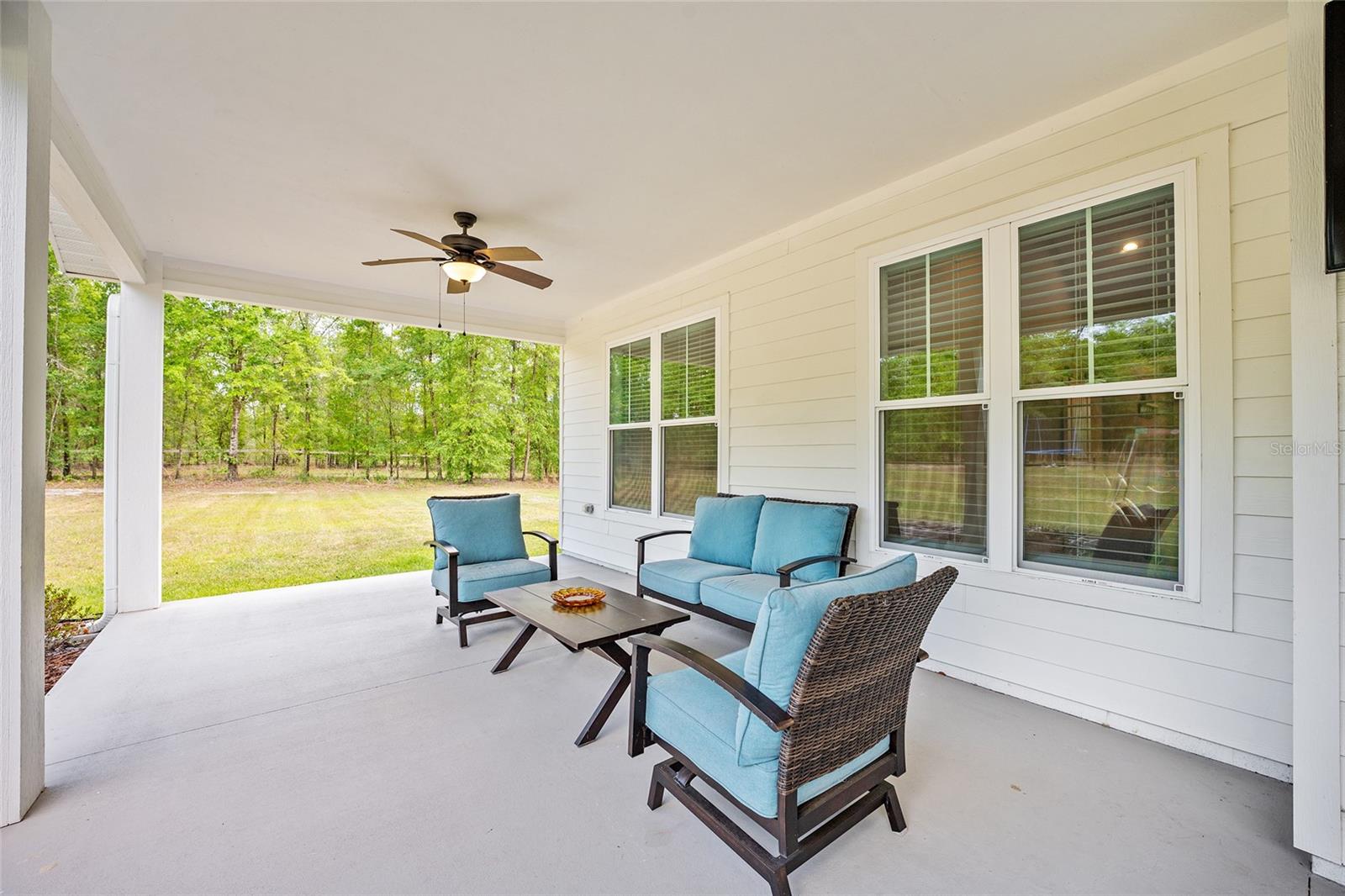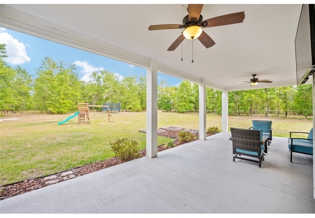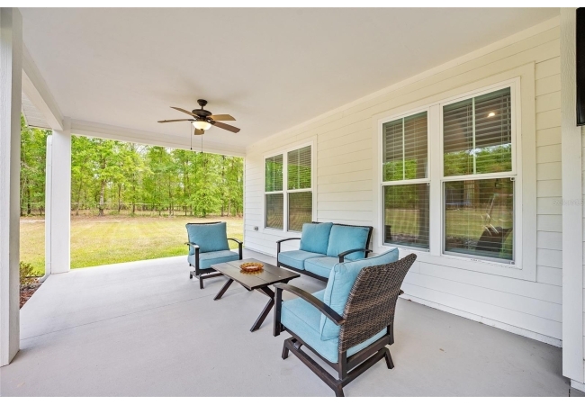 Step outside to a covered lanai that looks out over your acreage—quiet, still, and surrounded by trees. It’s the kind of setting that slows everything down.