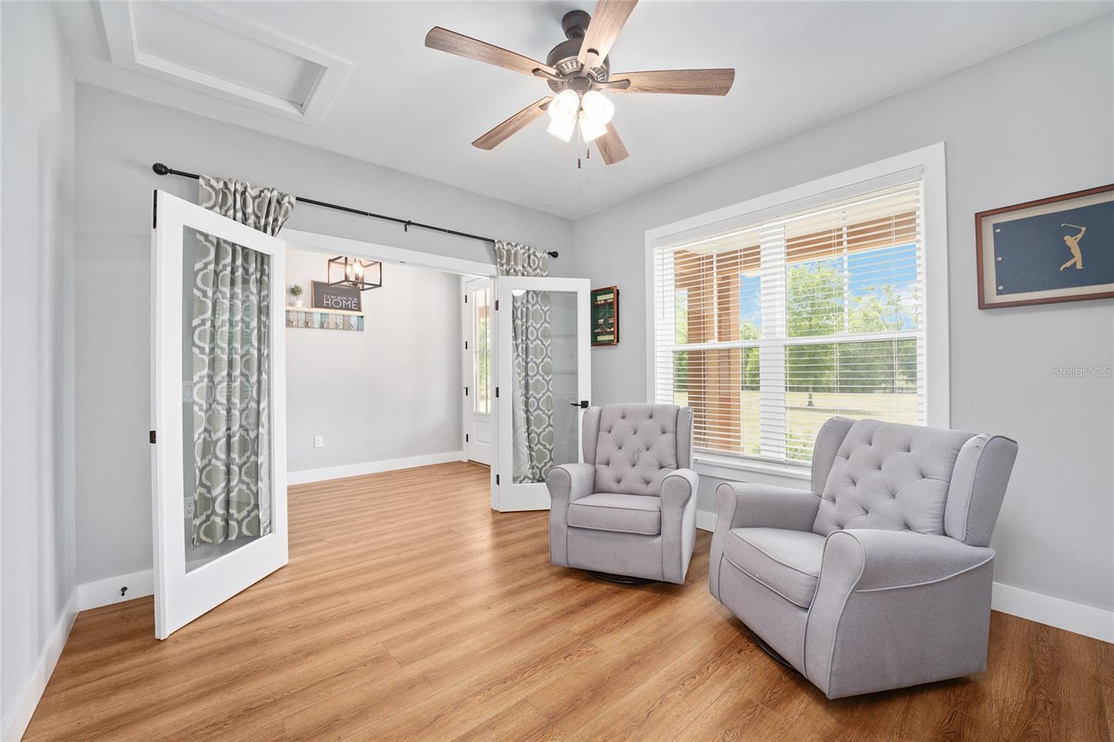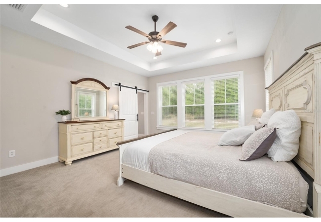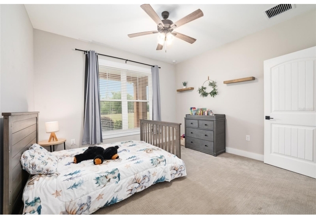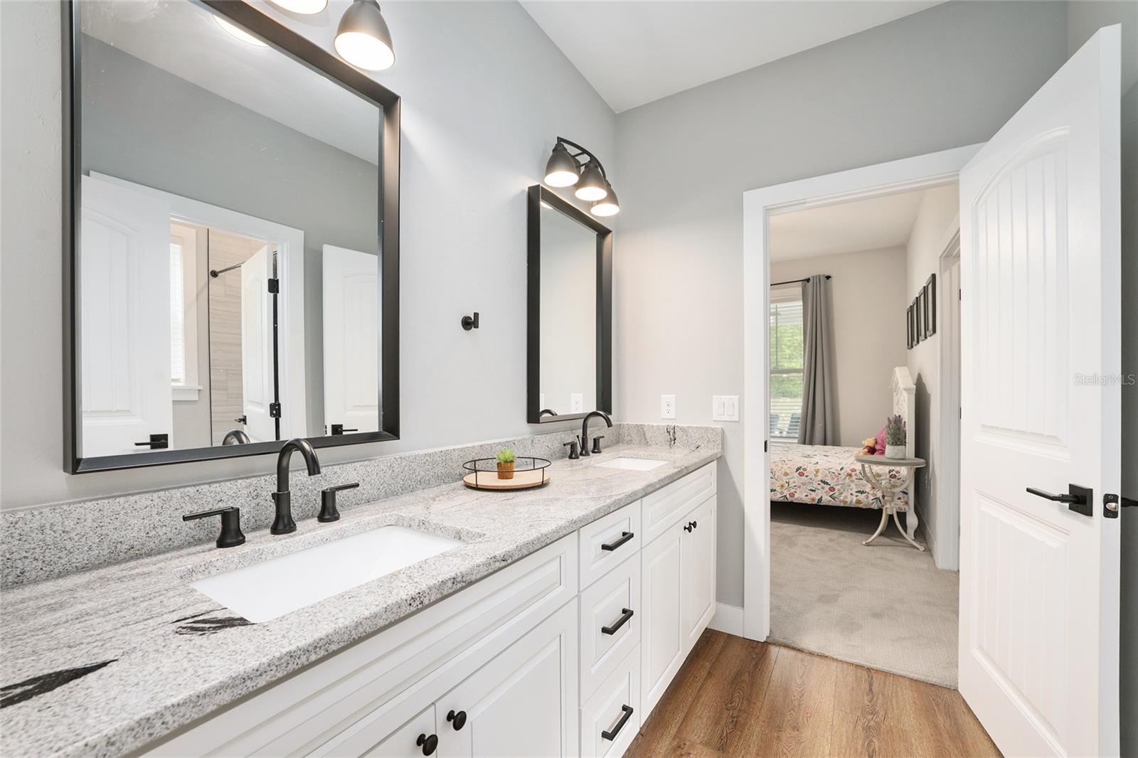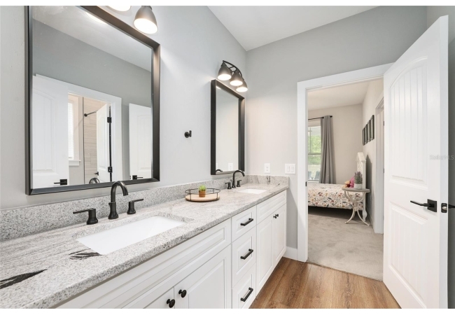 The layout lives like a four-bedroom thanks to a dedicated office—ideal for working from home or hosting long-term guests. Two secondary bedrooms connect through a Jack-and-Jill bath, while the primary suite is positioned for privacy.