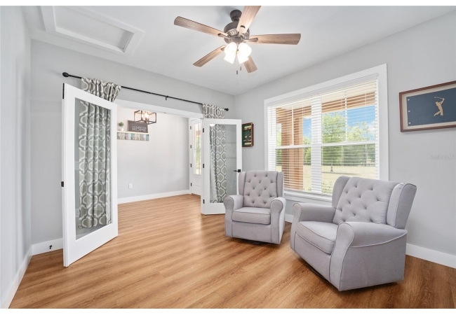Set on 5.25 quiet, tree-bordered acres in Alachua, this nearly new modern farmhouse by Amira Custom Homes offers the kind of privacy and space that’s getting harder to find—without giving up design or function.