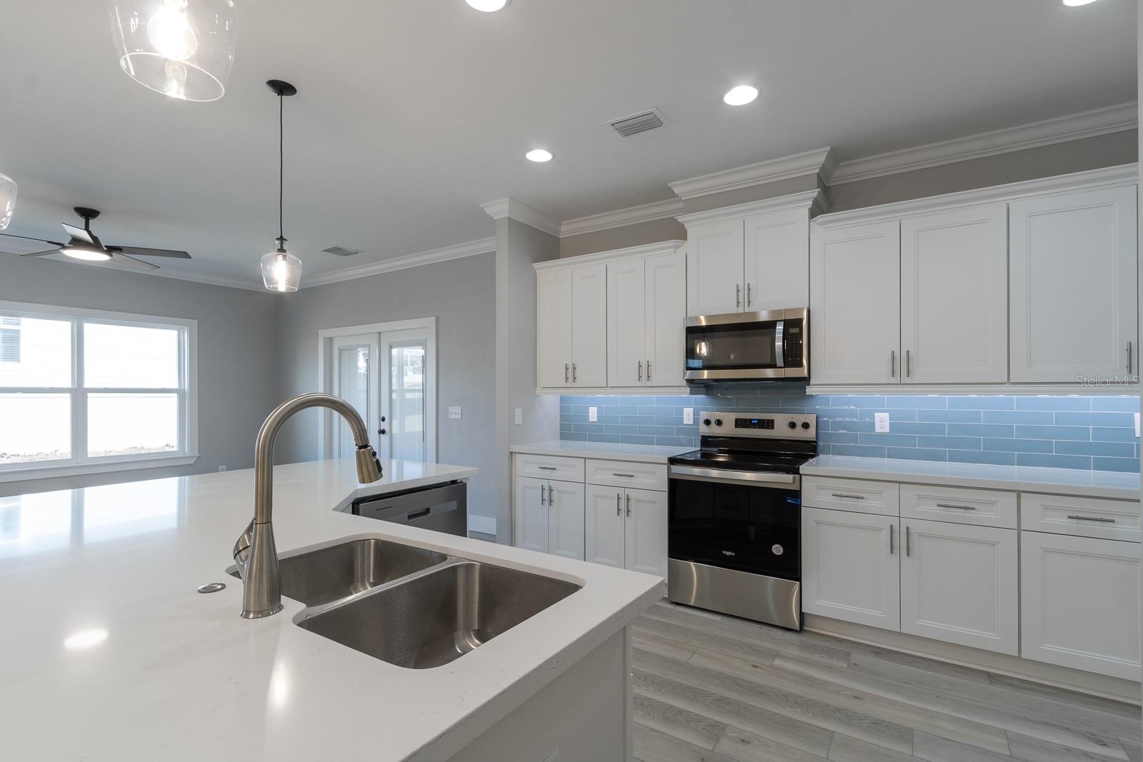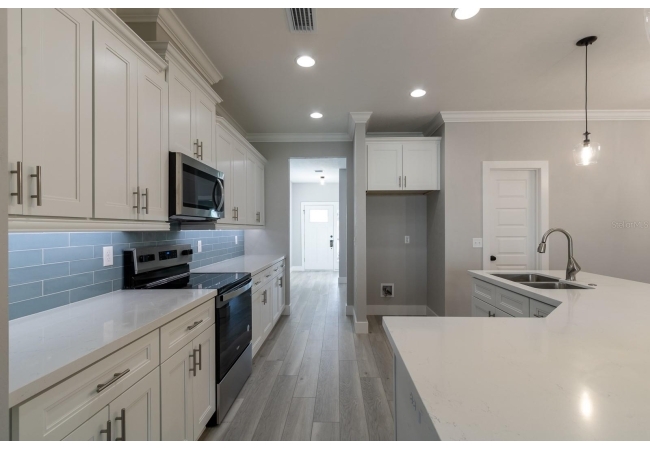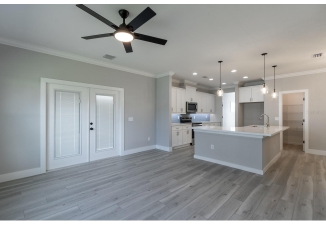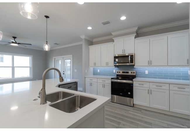 Under Construction. This is the brand new McKinley floor plan and has 3 bedrooms, 2 baths and study. With a spacious 1585 square feet. Grand paver entry way with paver patio. Open floor plan with White Cabinets Quartz counter tops and stainless-steel appliances. Vinyl plank flooring and crown molding throughout main living area. Ceiling fans in all bedrooms and Great Room. Built ins for storage and convenience. Enjoy living on your back screened in patio. Tankless water heater and 15 SEER AC. This home is under construction and will be completed by the end of January 2025. The subdivision has a community pool, playground and walking trail. South Pointe is conveniently located, a mile from Tioga Town Center where there is dining, shopping, and professional services. Come see why people Love living in South Pointe!