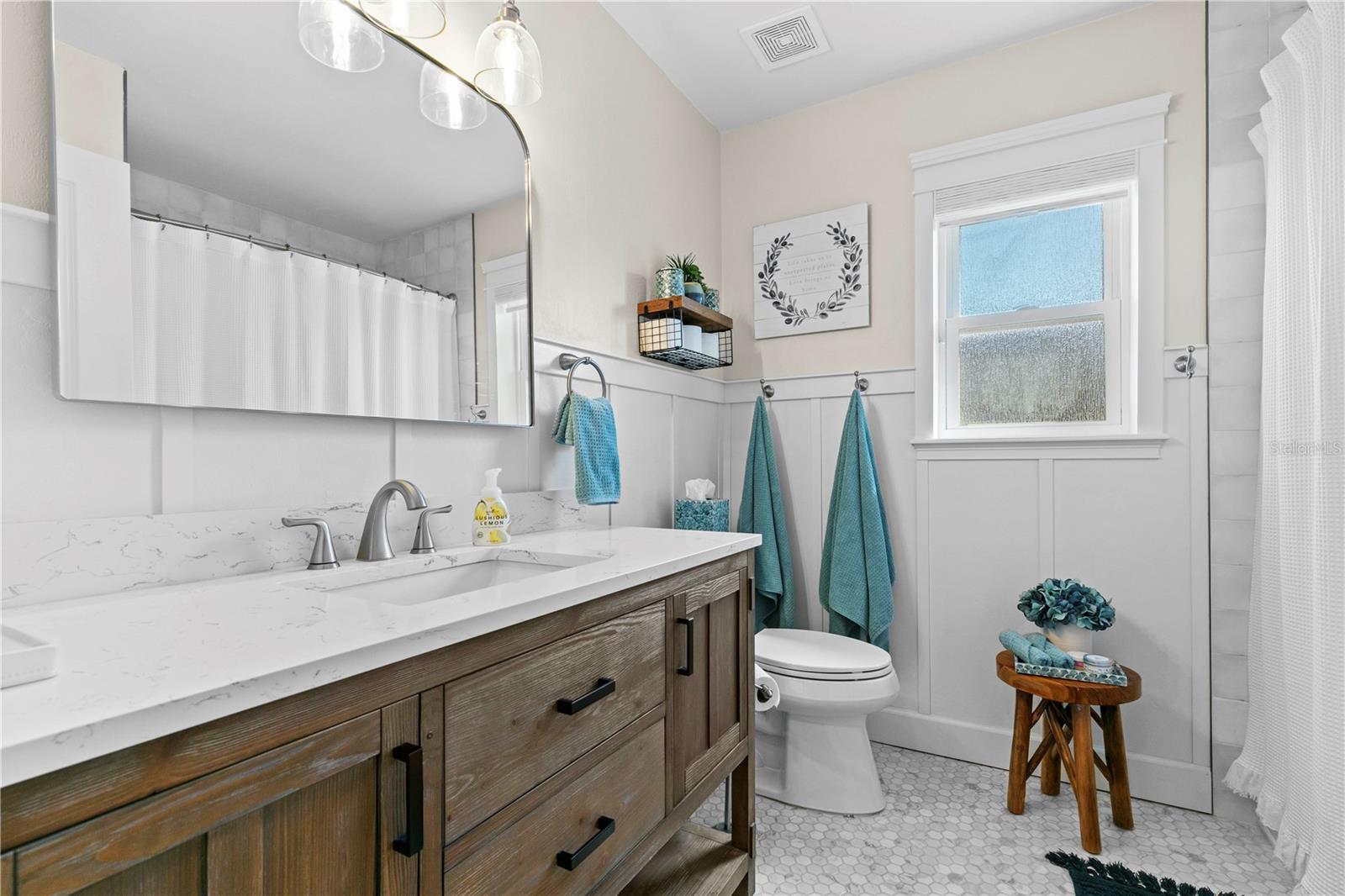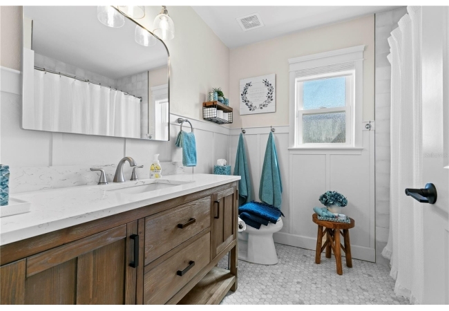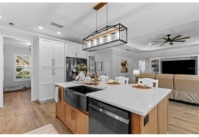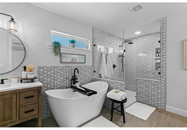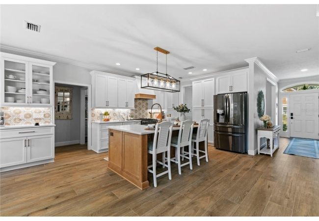 Welcome to 11981 SW 1st Road, a beautifully renovated 5-bedroom, 3-bath home located in the heart of Gainesville’s highly sought-after Fletcher Park community. Every detail of this home has been updated inside and out, including a brand-new roof (2025) for added peace of mind.Step into an inviting open-concept floor plan with new wood-look tile flooring flowing seamlessly throughout. The gourmet kitchen is a showstopper—featuring custom wood cabinetry, quartz countertops, a stainless steel farmhouse sink, and an oversized island that opens to the family and dining areas, perfect for entertaining.The spacious primary suite offers a private retreat with a tray ceiling, lanai access, and a luxury spa-style bath complete with a walk-in shower, soaking tub, split vanities, and a custom walk-in closet. Each bathroom has been fully remodeled with modern finishes and thoughtful design.Additional upgrades include new trims, designer lighting, plantation shutters, board-and-batten wall accents, wood looking tiles throughout, pavered covered patio and fresh interior and exterior paint.Enjoy outdoor living year-round on the paved lanai with a fire pit area overlooking a large fenced backyard—with plenty of room to add a pool. Completely fenced backyard with new Sod in the front. Natural gas connected. Located in one of Gainesville’s most desirable neighborhoods, Fletcher Park offers sidewalks, a playground, and wooded green spaces in a peaceful, family-friendly setting—close to top-rated schools, shopping, restaurants, and easy access to I-75.