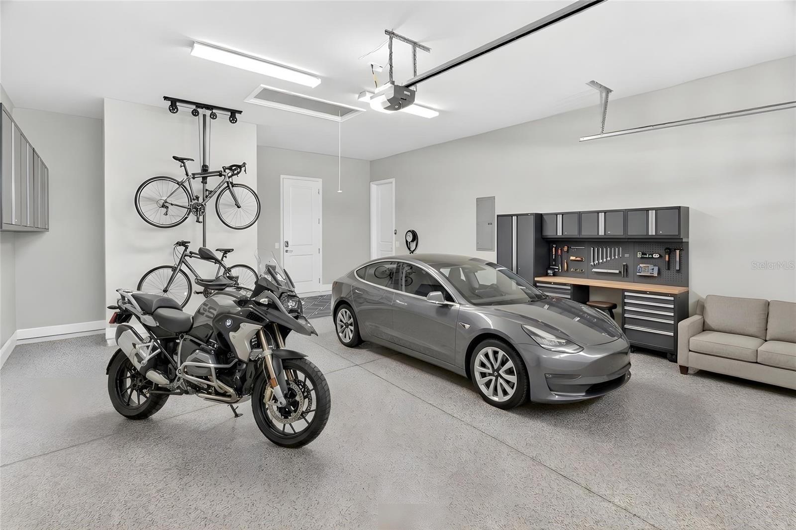 Additional highlights include a versatile flex space perfect for a home office or optional fourth bedroom, a spacious utility room with sink and cabinetry, and an oversized garage featuring a durable polyurea-finished floor, extra storage, pull-down attic access, and an insulated garage door for improved efficiency. All kitchen appliances, along with the washer and dryer, were replaced in January, offering added peace of mind.