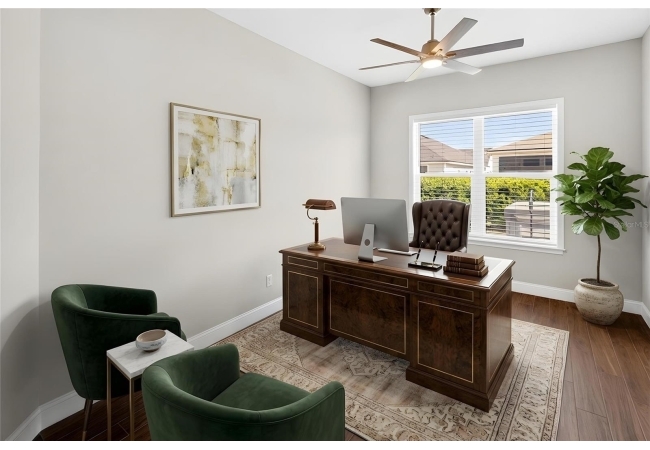 One or more photo(s) has been virtually staged. Welcome to this beautifully appointed 3-bedroom, 3.5-bath split-plan residence with a dedicated office/flex space—large enough to serve as a fourth bedroom—perfectly positioned in the highly sought-after community of Oakmont, just moments from the clubhouse and resort-style amenities.