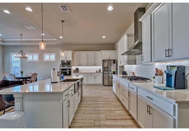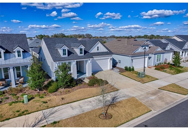 Welcome to Oakmont, the premier resort-style community in Gainesville! This gorgeous home is a 2022 Charlotte model with 3-bedrooms, 2-bathrooms, an additional office, and generously sized at 2,100 square feet. Choosing this option gives you a home with a fresh, modern look situated on a calm, well-established street, and a 2-minute bike ride to the amenity center. The design selections made in this home are modern, timeless, and very appealing. The layout is ideal, with a sizeable great room featuring gorgeous ceiling detail, a chef's kitchen, as well as a dining area with a view of backyard. The open design of the kitchen is perfect for entertaining with views of the entire living area and seating at the large island. The owner's suite has a very spacious bedroom, with a high ceiling, a walk-in closet, double vanity, and a large walk-in shower. The other side of this split-plan home has two full bedrooms and a full bathroom with a tub. In addition to the three bedrooms there is an office with a sliding barn door for privacy. Sliding glass doors leading to a spacious porch make the living area more adaptable and versatile. Adjacent to the garage is a laundry room with a utility sink. The seller selected the following upgrades when building this home: quartz countertops in the kitchen and bathrooms, an upgraded gas cook top with hood, gas connections for a summer kitchen, and interior shutters for privacy. Oakmont features resort-style living with a large amenity center with a beach entry pool, splash area for little ones, lap swimming lanes, a gym, event space, trails, playground, tennis, pickle ball, basketball, and volleyball. This community is also on CLAY ELECTRIC! Oakmont is in SW Gainesville making it convenient to Hawkstone Country Club, Tioga Town Center, UF, Santa Fe College, UF Health, HCA North FL Hospital, and loads of retail at Butler Plaza and Celebration Pointe.