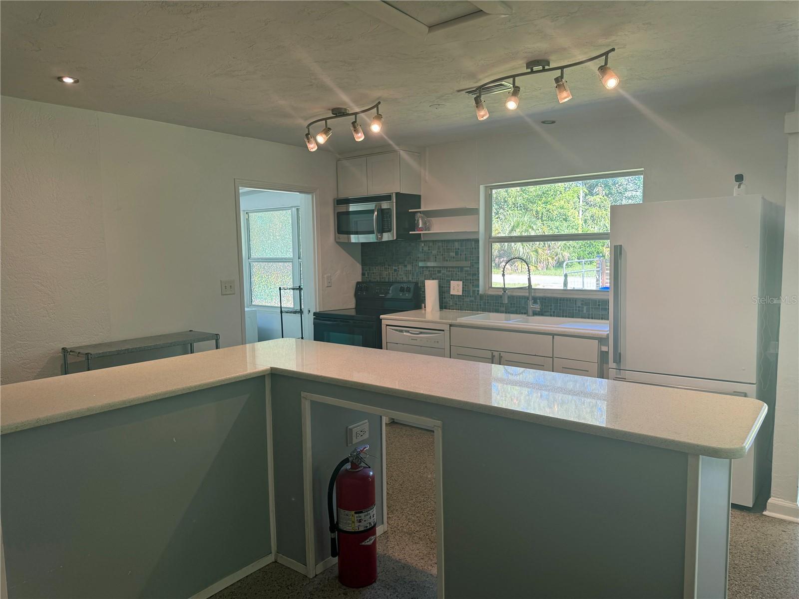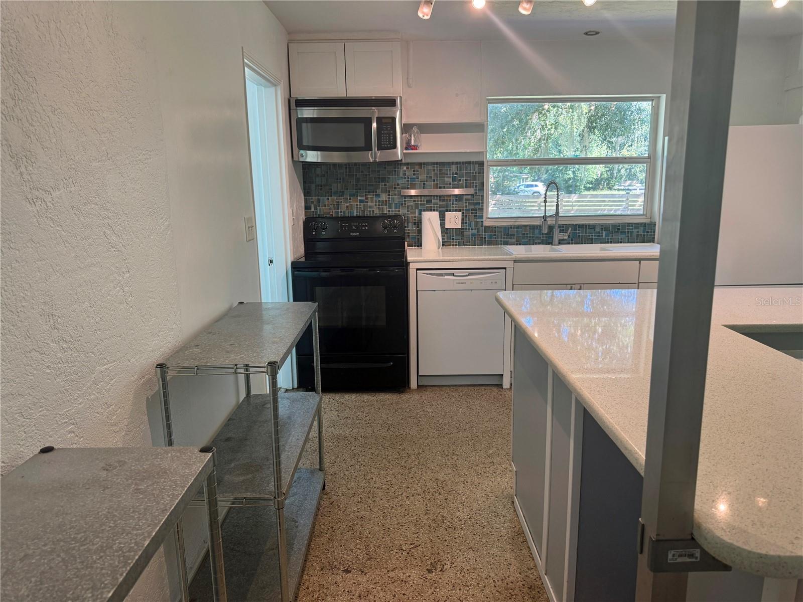 • Open-concept living & kitchen with a stunning wall of windows