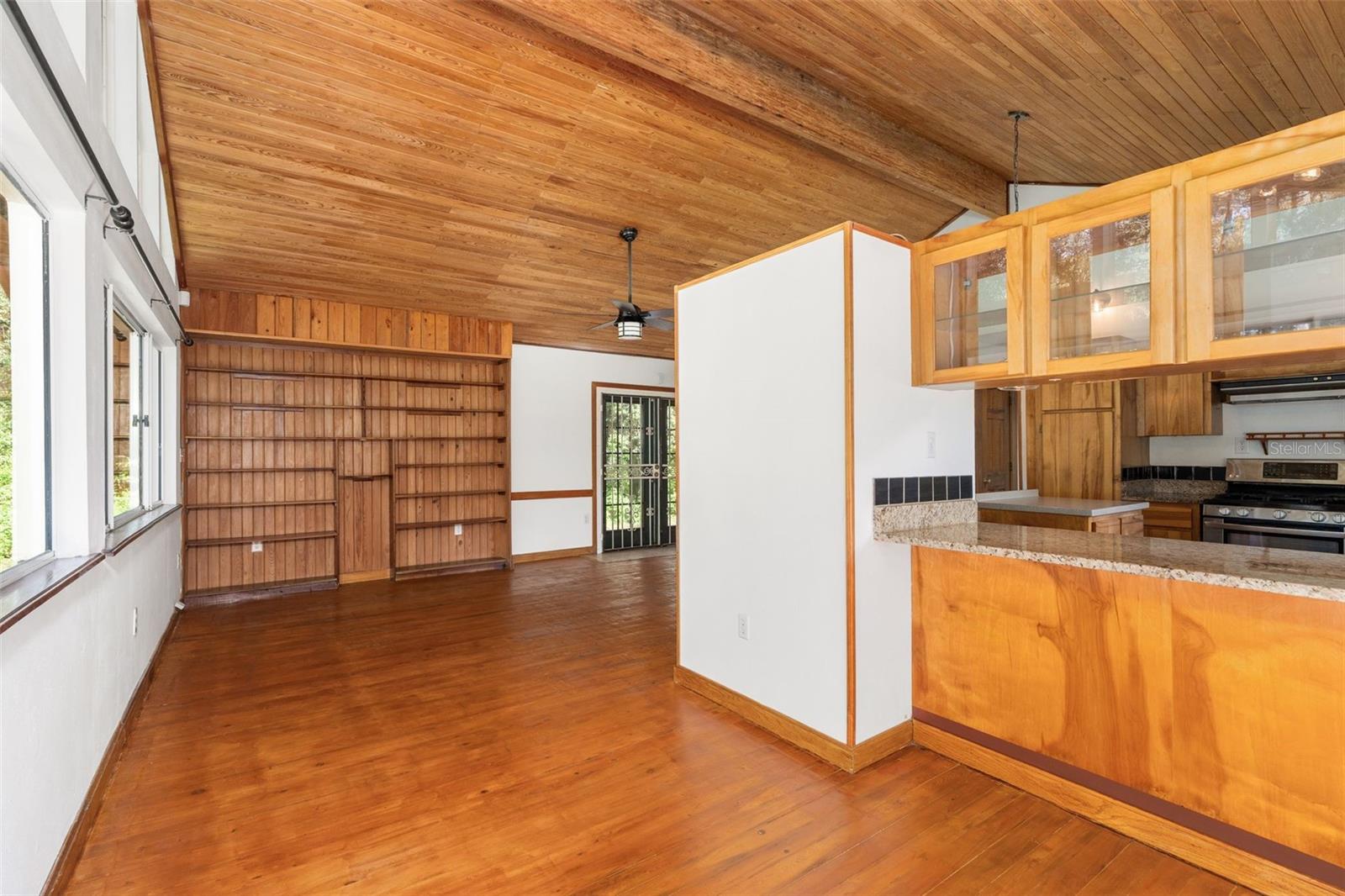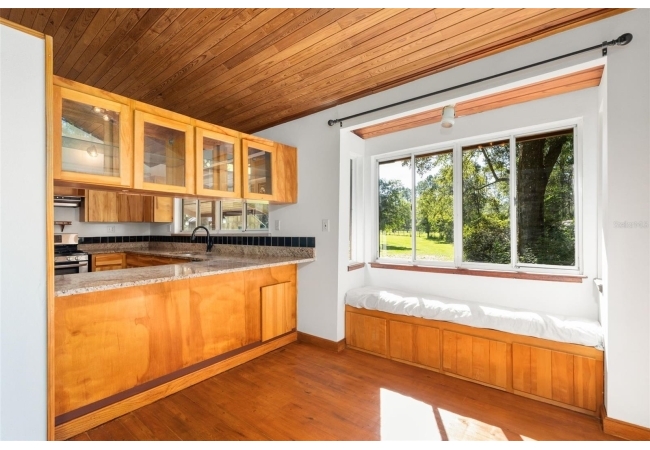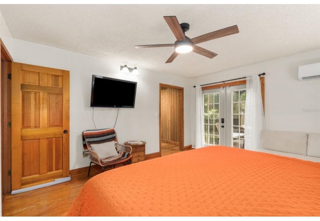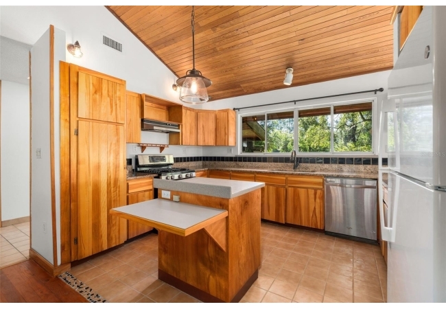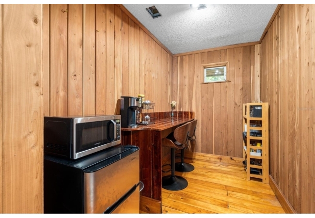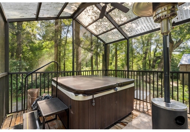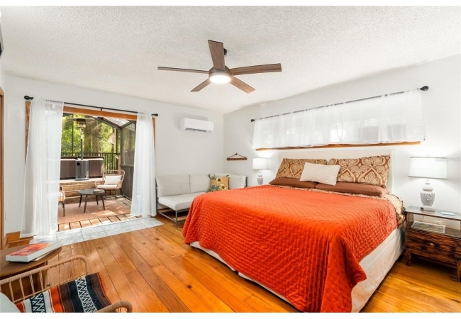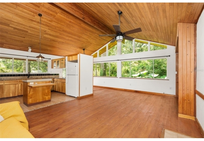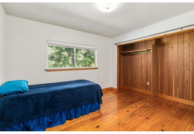 Assumable mortgage at a low 2.7 rate, pay only $800/month covering 1/2 the purchase price, if you can bring $170K cash. Craftsman’s Cypress Retreat on 5 Acres. This one of a kind 3 Bed, 2Bath, home was constructed almost entirely of old-growth milled cypress wood, offering timeless quality and rare craftsmanship. Step inside and you’ll be greeted by vaulted tongue-and-groove ceilings, refinished heart pine wood floors, and expansive windows showcasing the surrounding nature. The elevated layout and wooded views give the home a treehouse-like feel, offering both privacy and peace. The spacious primary suite, currently used as a successful Airbnb, opens to a screened wood deck with a hot tub—the perfect setting to unwind in your private oasis. The kitchen features solid wood cabinetry, granite countertops, and a gas stove. The living room has built-in bookshelves, all lovingly maintained. The three bedroom closets are lined with cedar, a thoughtful detail that speaks to the home’s enduring quality. A detached cypress-built shed adds valuable space for a workshop or extra storage. The laundry room is off the main home in a large utility room with  3 commercial grade stainless steel sinks. Tucked away, but minutes from downtown Alachua, shopping, dining, and parks.  It has only had two owners since it was custom-built in 1991. Enjoy this hideaway where natural beauty, privacy, and convenience come together.
