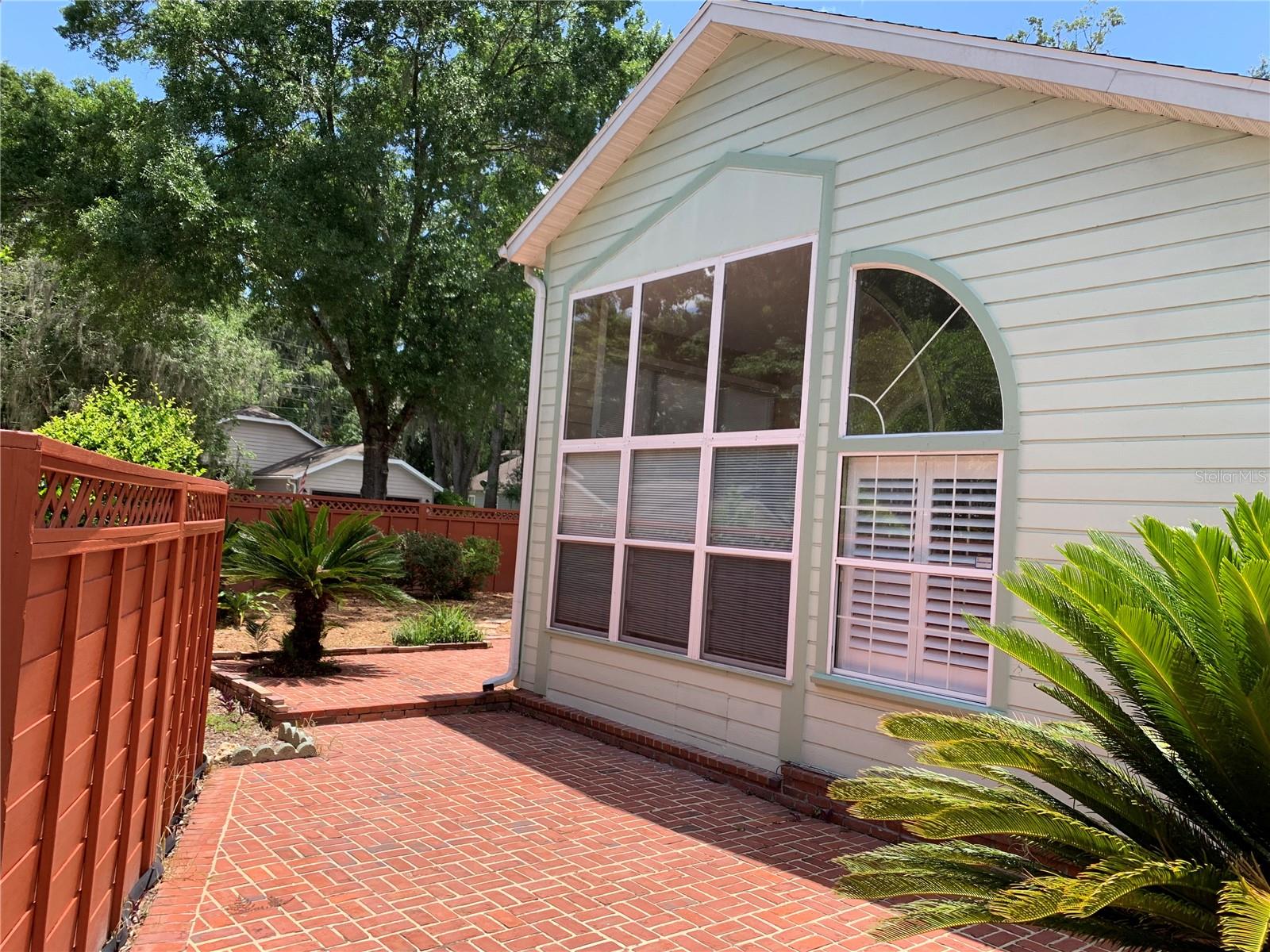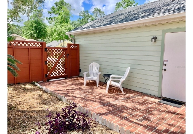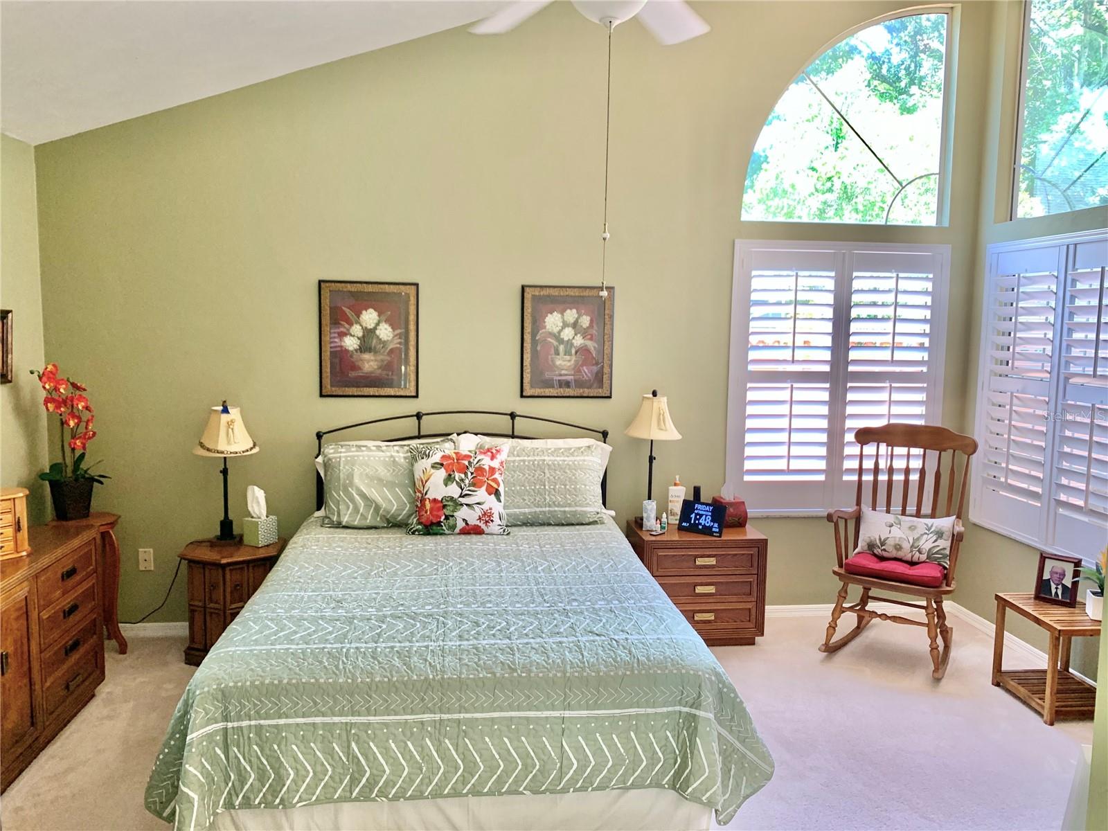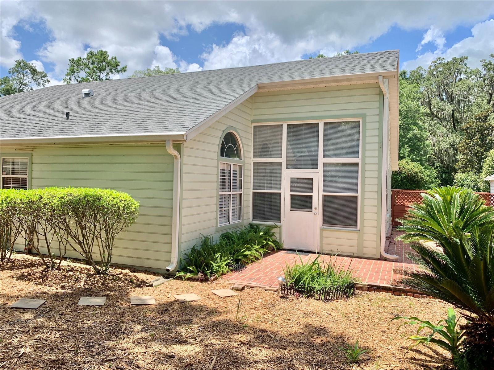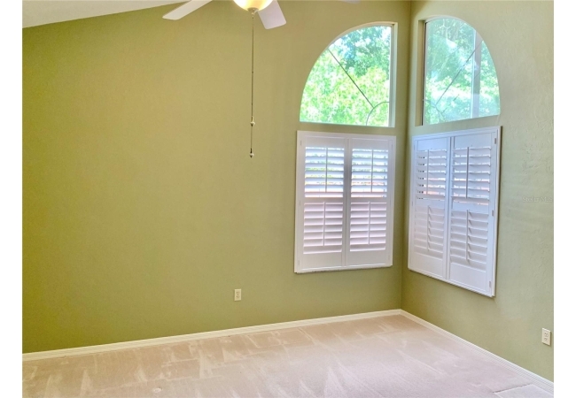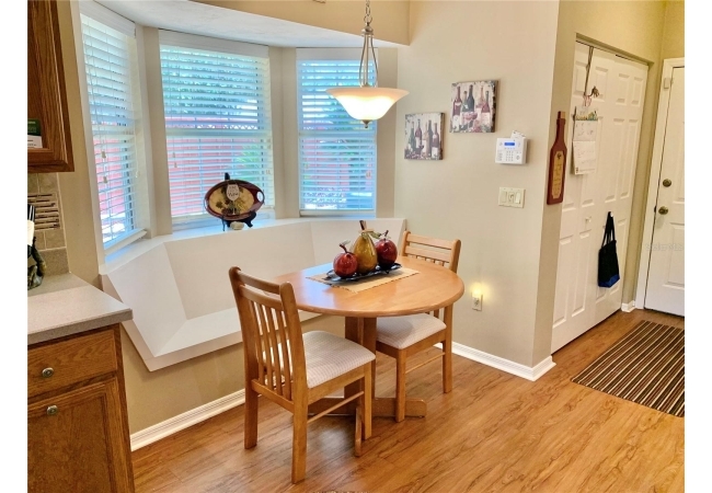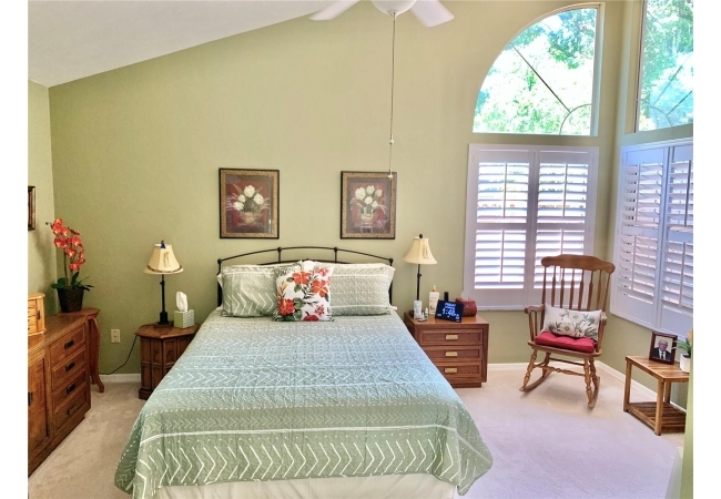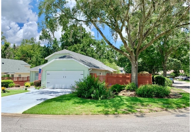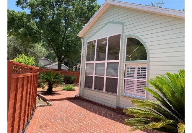 Charming Corner Lot 3/2 Patio home in West End! This beautiful home has been meticulously maintained and loved by the seller. The home features a wonderful open living room with high vaulted ceilings and engineered wood floors. The living, dinning and bedrooms all have beautiful plantation shutters that were added. The kitchen was updated with new wood cabinets, Corian solid surface countertops, a complimenting tiled backsplash and luxury vinyl plank flooring for easy maintanance. The kitchen also has a breakfast area with built in seating at the bay windows.The large primary bedroom suite also has vaulted ceilings with arched windows which let in plenty of natural lighting. Heading toward the primary bathroom you will find a private water closet with a single vanity adorn with a gorgeous dolomite stone countertop. Additionally there is a second vanity with matching countertop in the main area of the bathroom with jetted tub and separate walk-in shower. The walk-in closet has ample storage shelving for all your clothing and accessories. The large front guest room has a window seat with storage below with the addition of the large standard closet. The guest bathroom has been nicely updated with newer vanity and fixtures. The third bedroom is currently set up as a den/sitting room. This room has a surprisingly large walk in closet that currently houses a desk and bookshelf. This room has double French doors leading in and has a connecting pocket door to the kitchen. The laundry closet is located across from the pantry in the kitchen and has additional shelving as well. The back of the home has a glassed Florida room which leads to the large rear and side patios. The fencing around the backyard is newer and offers a wonderful sense of privacy. The yard and garden areas around the home have been neatly manicured to give you a feel of a tranquil oasis. The home has a 2 car garage with plenty of space for extra storage. The home's water supply lines were re-plumbed in 2012. Updates in recent years are as follows: Water Heater 2025, New Fence 2025, New roof 2022, Plantation shutters 2020, New garage door 2014 and HVAC we believe is 2007 and regularly serviced. The community offers a clubhouse, pool and tennis courts. front lawn maintanance is included in the HOA fee. Come and take a tour of this wonderful home that exemplifies the pride of ownership.