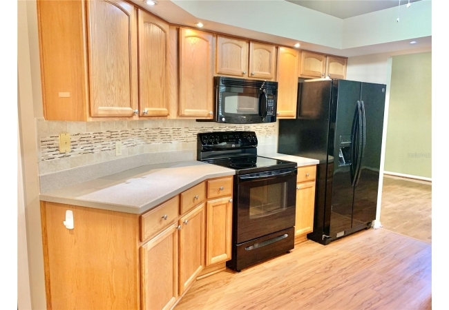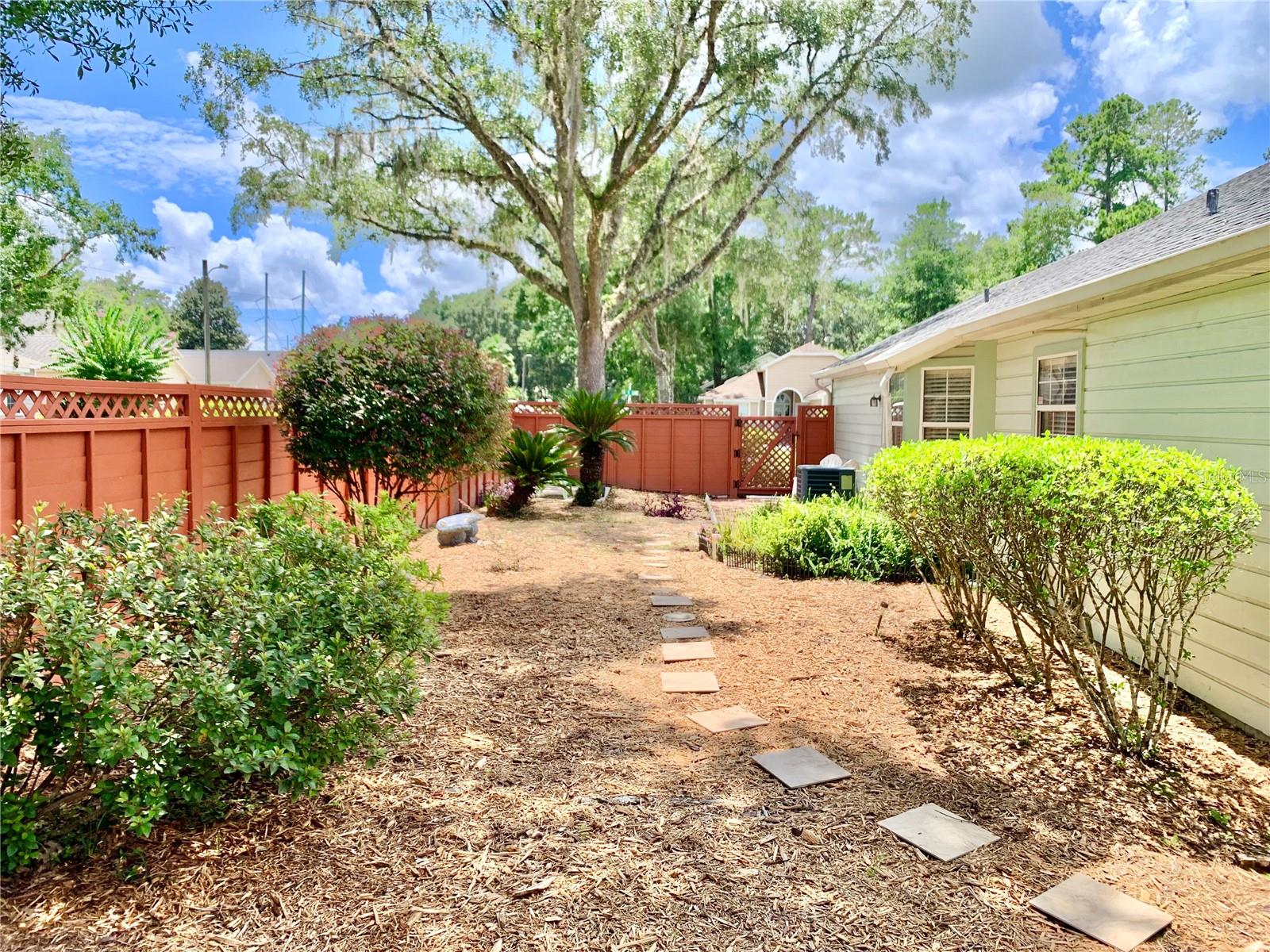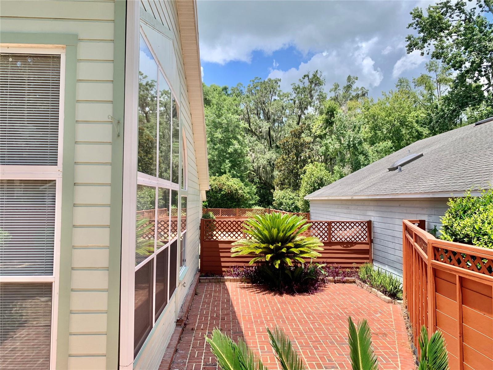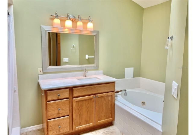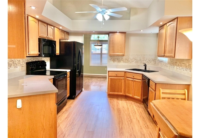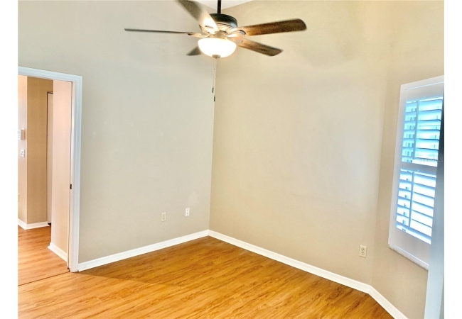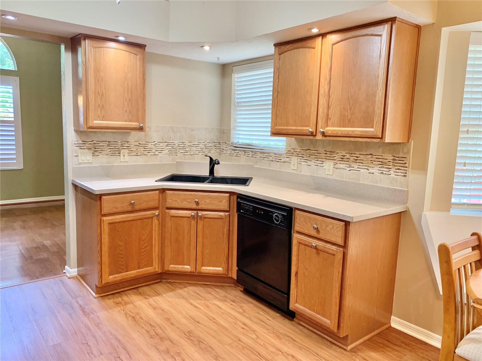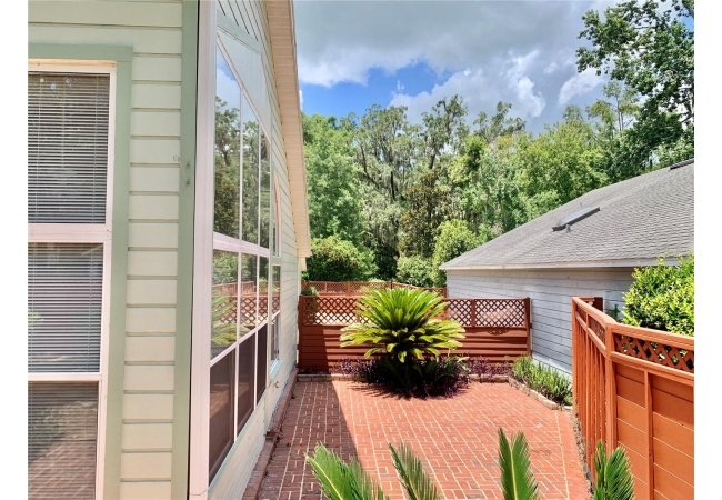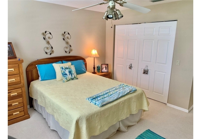 Charming Corner Lot 3/2 Patio home in West End! This beautiful home has been meticulously maintained and loved by the seller. The home features a wonderful open living room with high vaulted ceilings and engineered wood floors. The living, dinning and bedrooms all have beautiful plantation shutters that were added. The kitchen was updated with new wood cabinets, Corian solid surface countertops, a complimenting tiled backsplash and luxury vinyl plank flooring for easy maintanance. The kitchen also has a breakfast area with built in seating at the bay windows.The large primary bedroom suite also has vaulted ceilings with arched windows which let in plenty of natural lighting. Heading toward the primary bathroom you will find a private water closet with a single vanity adorn with a gorgeous dolomite stone countertop. Additionally there is a second vanity with matching countertop in the main area of the bathroom with jetted tub and separate walk-in shower. The walk-in closet has ample storage shelving for all your clothing and accessories. The large front guest room has a window seat with storage below with the addition of the large standard closet. The guest bathroom has been nicely updated with newer vanity and fixtures. The third bedroom is currently set up as a den/sitting room. This room has a surprisingly large walk in closet that currently houses a desk and bookshelf. This room has double French doors leading in and has a connecting pocket door to the kitchen. The laundry closet is located across from the pantry in the kitchen and has additional shelving as well. The back of the home has a glassed Florida room which leads to the large rear and side patios. The fencing around the backyard is newer and offers a wonderful sense of privacy. The yard and garden areas around the home have been neatly manicured to give you a feel of a tranquil oasis. The home has a 2 car garage with plenty of space for extra storage. The home's water supply lines were re-plumbed in 2012. Updates in recent years are as follows: Water Heater 2025, New Fence 2025, New roof 2022, Plantation shutters 2020, New garage door 2014 and HVAC we believe is 2007 and regularly serviced. The community offers a clubhouse, pool and tennis courts. front lawn maintanance is included in the HOA fee. Come and take a tour of this wonderful home that exemplifies the pride of ownership.