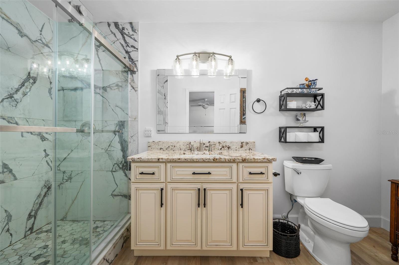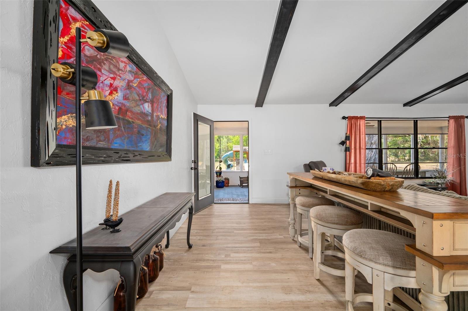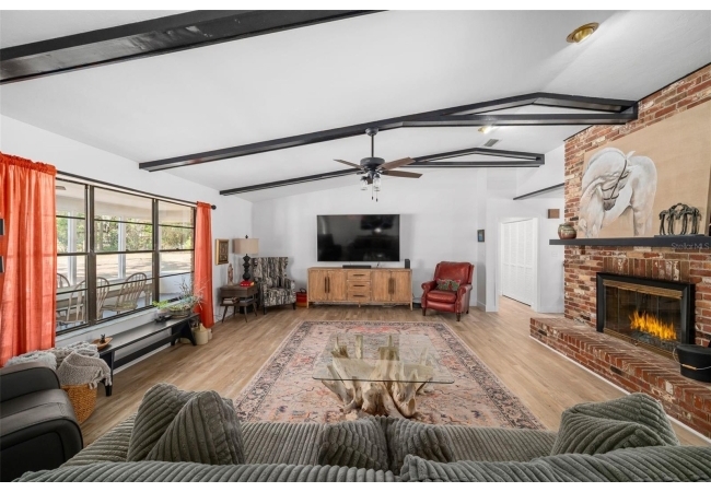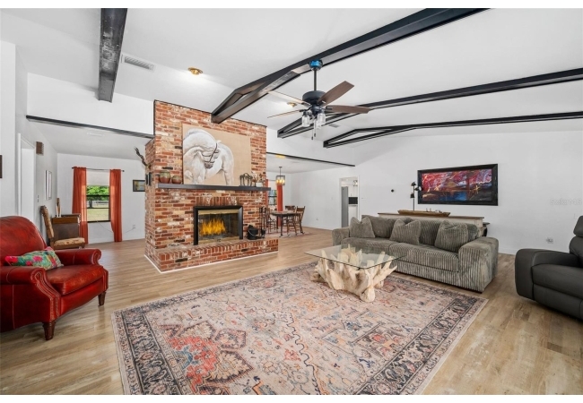 Here’s your opportunity to own a full brick home on 4.5 acres with a modern farmhouse feel. This beautifully updated home features a renovated kitchen with granite countertops, a spacious island with storage, and plenty of room to gather. Living room has vaulted ceilings with wood beams and an inviting wood fireplace. The property backs directly to the San Felasco Trail and offers plenty of space for horses. Open the back fence and you are on the trail from your back yard! A pole barn provides excellent storage for an RV, boat, or recreational equipment. Relax on the large screened porch overlooking the private backyard. The entire property is fully fenced, with an additional smaller fenced area recently added for a horse. All brick exterior offers durability and a low-maintenance lifestyle. Extra insulation in the attic and a tankless water heater helps keep the electric bill low. Convenient to Alachua and High Springs.
