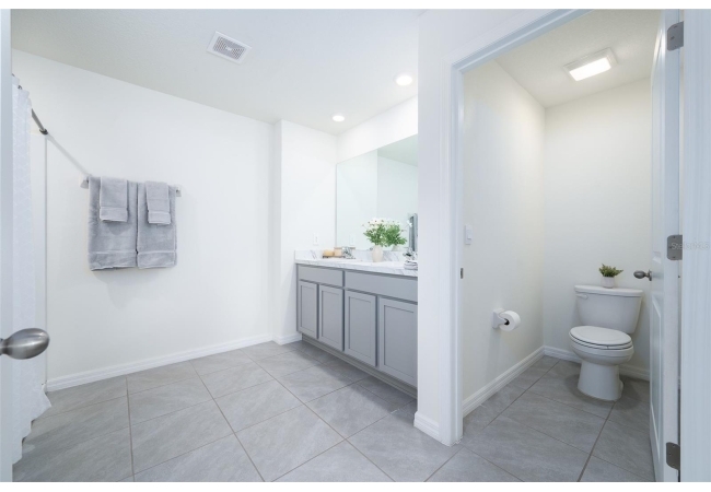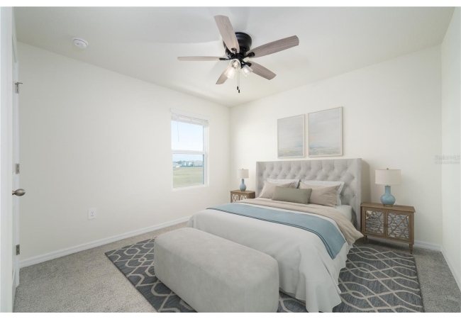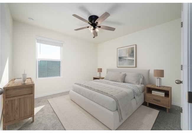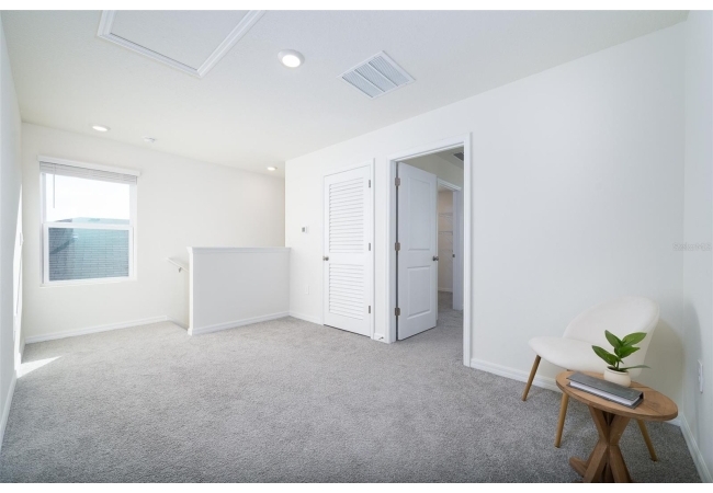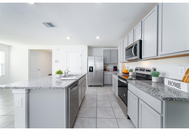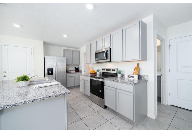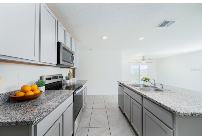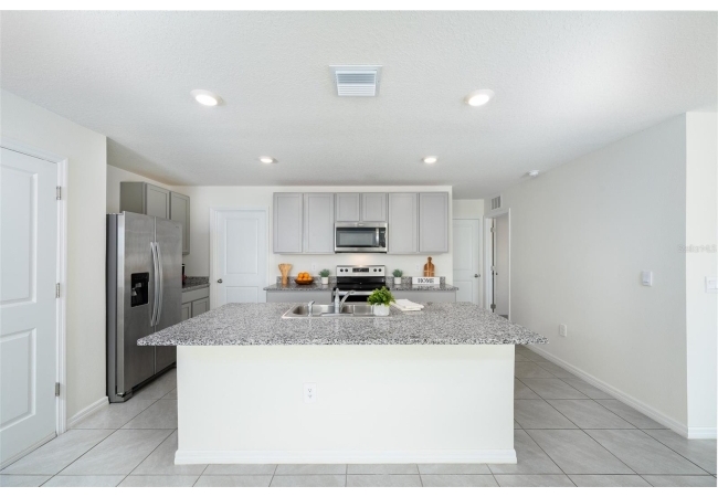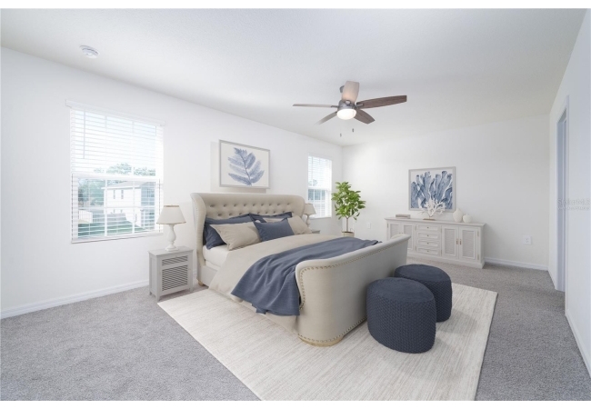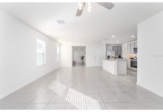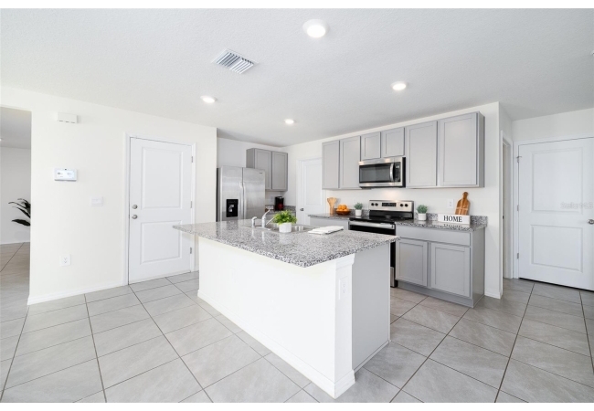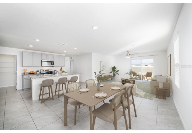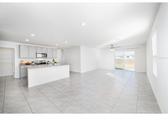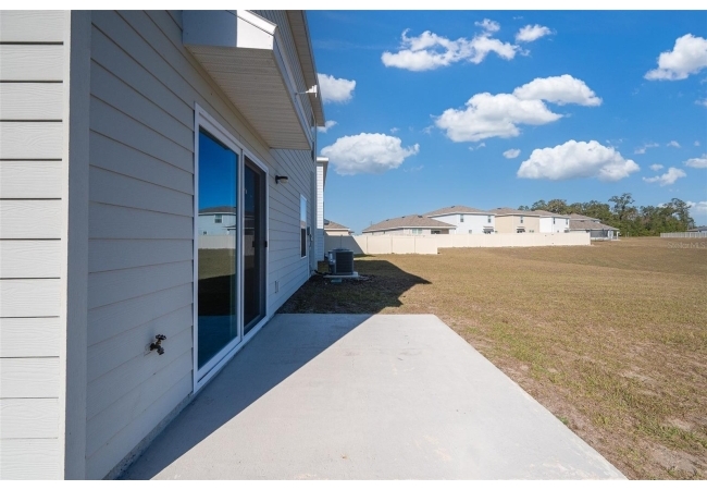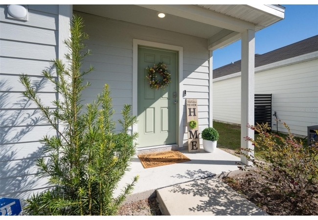 One or more photo(s) has been virtually staged. Welcome to this beautiful, move-in ready 5-bedroom, 3-bathroom home built in 2023, offering modern comfort, a thoughtful layout with abundant natural light throughout, and a highly desirable Newberry location. Step inside to a large entryway foyer with a convenient closet tucked neatly under the stairs, setting the tone for the home’s smart use of space and storage. The main level features a spacious open-concept floorplan, perfect for entertaining and everyday living. The kitchen is a centerpiece highlight, showcasing granite countertops, a large island with breakfast bar, a generous walk-in pantry, and additional counter space ideal for a coffee bar. Abundant windows fill the space with natural light, creating a bright and welcoming atmosphere. A main-level bedroom and bathroom provide flexibility for guests, a home office, or multigenerational living. Upstairs, you’ll find four additional bedrooms, including the expansive owner’s suite, along with a convenient upstairs laundry room and a versatile loft offering extra living, work, or play space. The owner’s suite is a true retreat featuring a large walk-in closet with a window and an ensuite bathroom complete with a double vanity with soft-close cabinets and drawers, a large linen closet, and a separate water closet. Enjoy ample storage throughout the home and seamless indoor-outdoor living with sliding glass doors leading to the rear patio. The backyard is buffered from neighboring homes, backing to a common area/retention space with no direct rear neighbor. Completing the home is an attached 2-car garage. With a prime location near the Easton Newberry Archery Center, offering access to a variety of recreational opportunities, and being just minutes from shopping, dining, and all that Newberry has to offer, this nearly new home combines space, style, and location—ready for you to move in and enjoy.