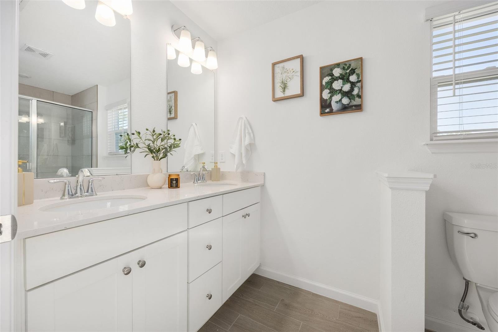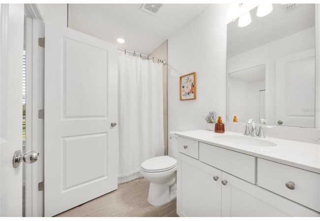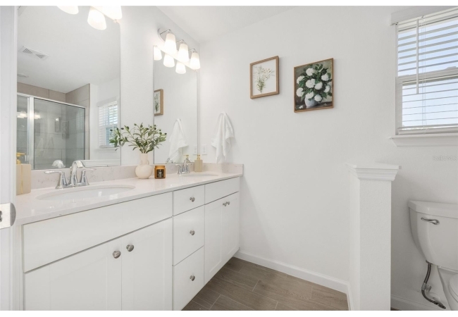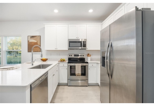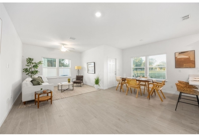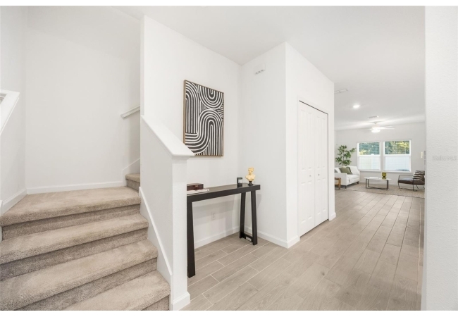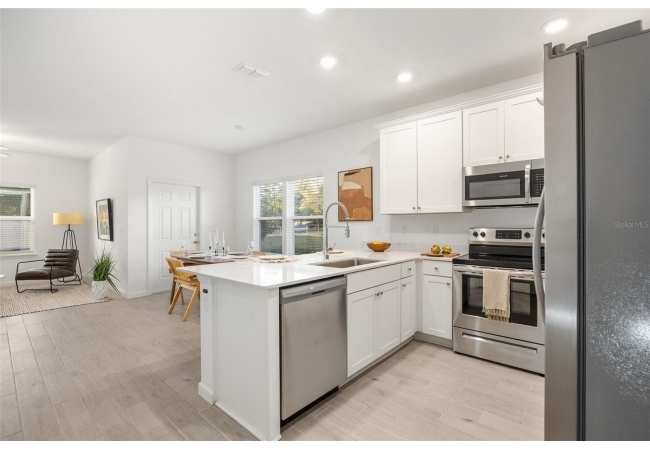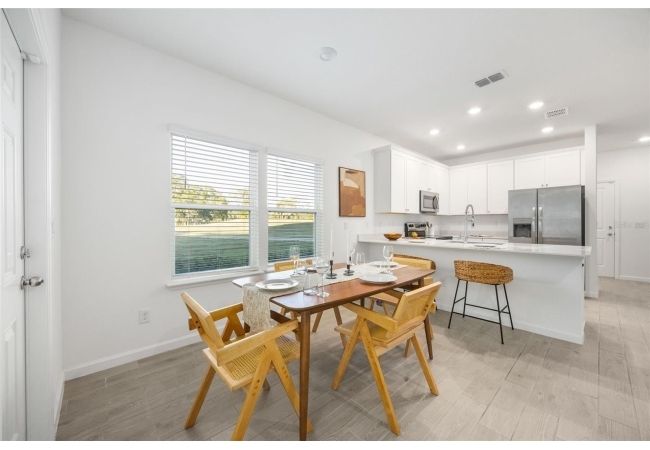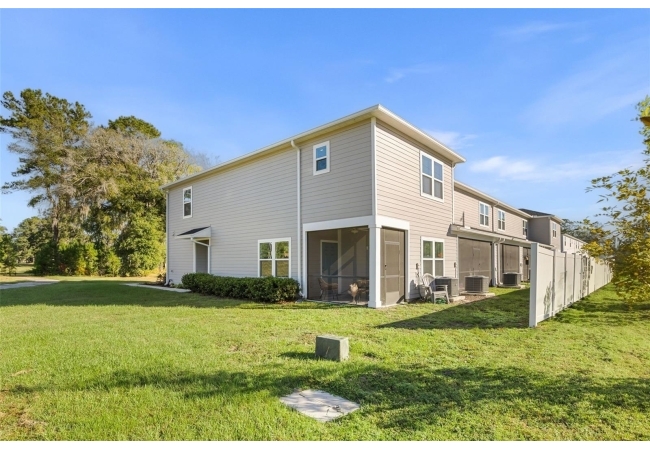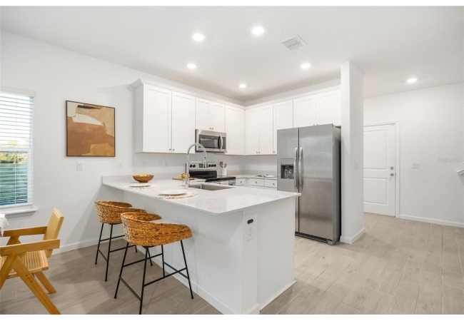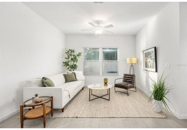 Welcome to convenient luxury living! This nearly new, two-story end unit townhome in the highly sought-after Tara West End community offers the perfect blend of style, space, and location. Step inside the first level to find an open-concept design that connects the gathering room, kitchen, and nook, all featuring elegant and durable wood look tile throughout. The multifunctional U-shaped kitchen is a chef's delight, boasting stainless-steel appliances, a large single-basin sink, and beautiful quartz countertops. Enjoy Florida evenings and convenient indoor-outdoor entertaining on the screened lanai. Upstairs, the second floor hosts all three bedrooms and a versatile loft. Retreat to the spacious master suite, complete with a luxurious master bath featuring dual vanity sinks and a walk-in shower. Bedrooms 2 and 3 share a convenient Jack-and-Jill bathroom. The loft space is perfect as a study, media center, or secondary seating area. Location, Location, Location! You couldn't ask for a better spot—this community is situated directly across the street from the vibrant Tioga Town Center, putting dining, shopping, and entertainment within easy walking distance. Tara West End provides a community of new, maintenance-free townhomes, simplifying your lifestyle. Designed for every family type and living situation, this specific end unit offers extra light and privacy. Don't miss the chance to own this fantastic home!