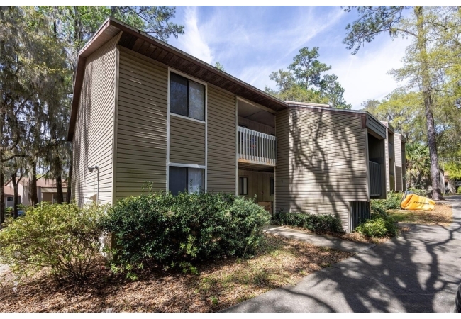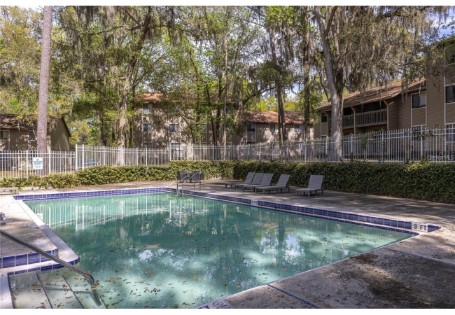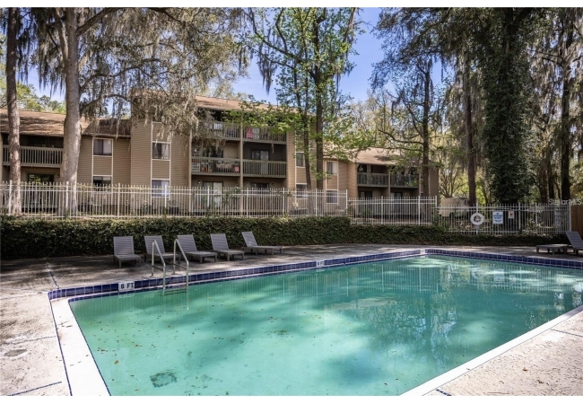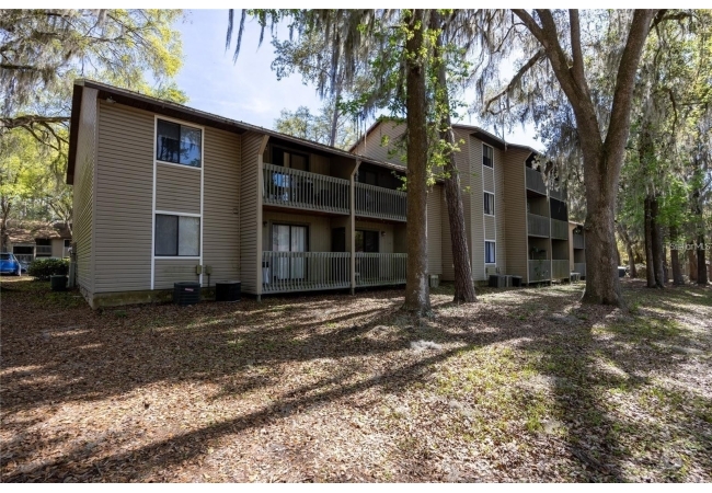 Owner financing is available! Welcome to this move-in ready 2 bedroom 2 bathroom condo in Treehouse Village. This property is conveniently located near the University of Florida, UF Health Shands Hospital, the VA Hospital, and Downtown. The condo features two spacious bedrooms, each with recently installed luxury vinyl flooring and his-and-her closets, as well as its own bathroom. The main living area includes a kitchen with an updated stove and dishwasher that overlooks the dining area and living room. Step out onto the balcony to enjoy views of a wooded area, the pool, and the clubhouse. The community offers two swimming pools, a fitness center, and convenient access to the UF bus line.