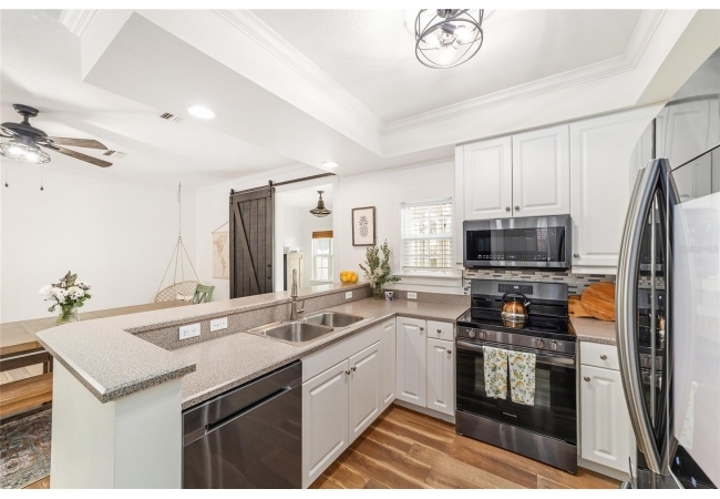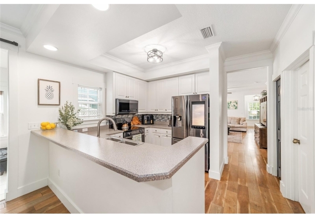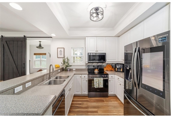 This beautifully updated home features a brand-new roof, updated front door, fresh landscaping, and thoughtfully curated interior upgrades throughout. Step into a welcoming foyer highlighted by a custom-built drop station, perfect for keeping daily essentials organized. The main living area offers flexibility for everyday living or entertaining, flowing seamlessly into the updated kitchen with new appliances and an inviting nook centered around a gas fireplace. Just beyond, a sun-filled den or sunroom with a barn door provides versatile space, ideal for a home office, playroom, or guest retreat. Abundant natural light showcases recent updates including new flooring, lighting, trim, refreshed bathrooms, and fresh interior paint.