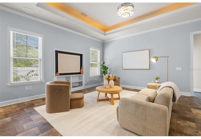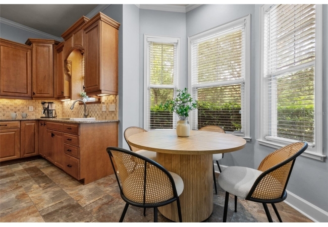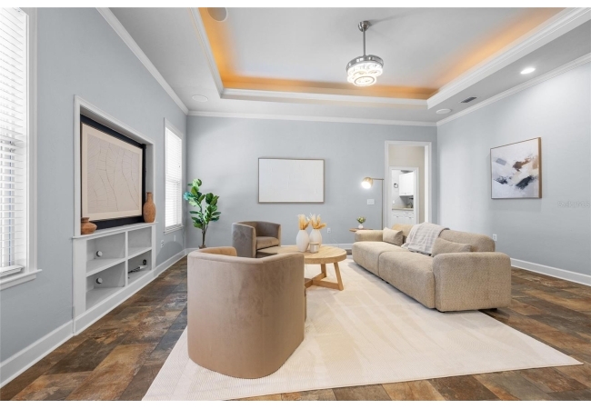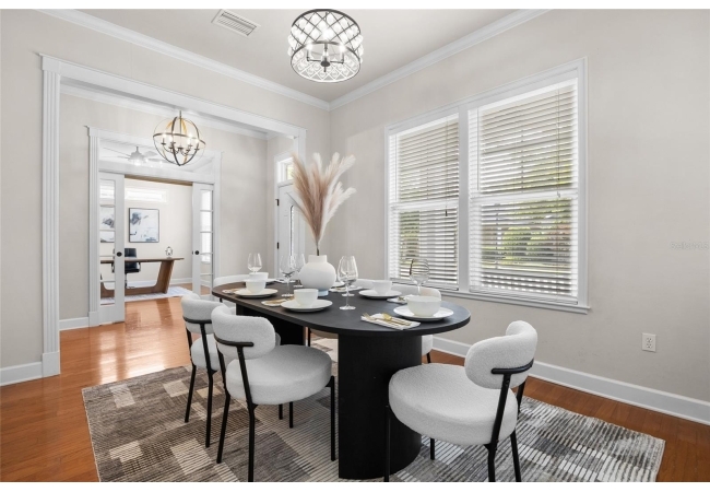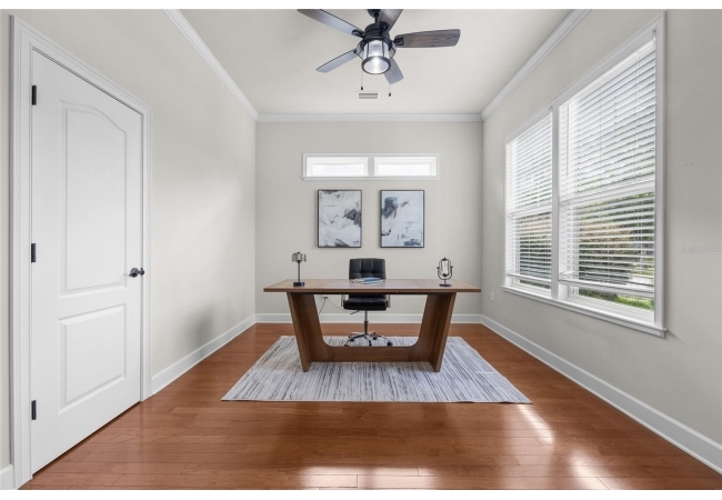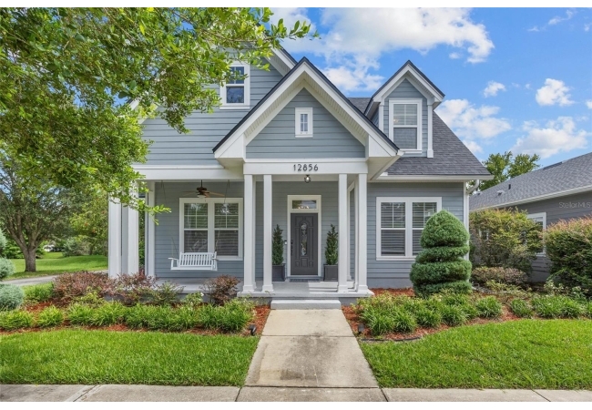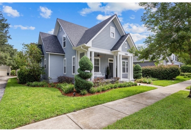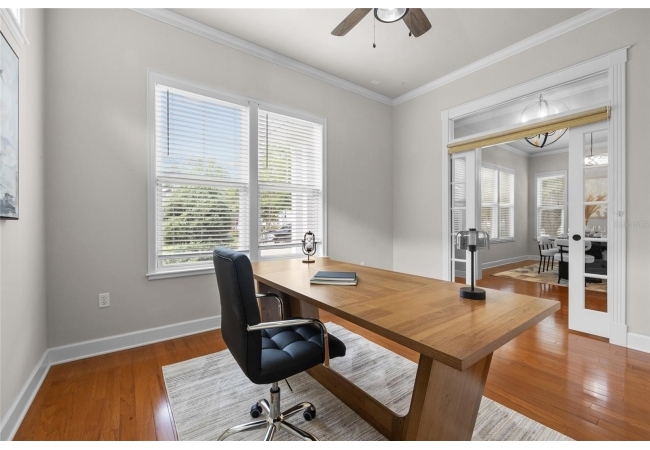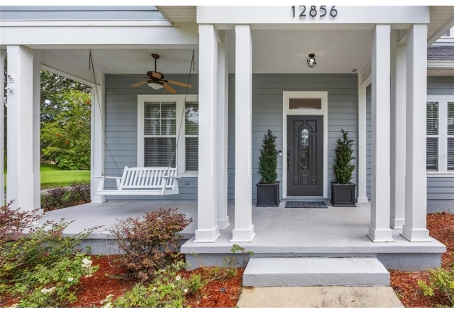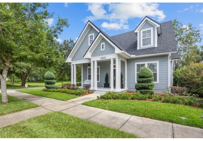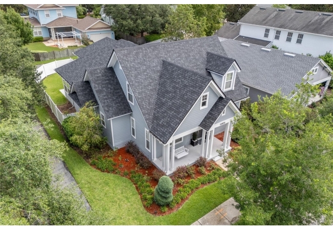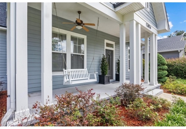 Charming Town of Tioga Home on a Premier Corner Lot! Step into this Pridgen-built residence, perfectly situated on a coveted corner lot next to a tranquil retention area—offering added privacy and open green views. Located in the vibrant and golf-cart-friendly Town of Tioga, this home blends timeless style with modern comfort. With a versatile layout offering 5 bedrooms and 3 full baths—or 4 bedrooms plus a dedicated home office—this property is designed to adapt to your lifestyle. From the inviting foyer, you'll find a formal dining room that sets the stage for memorable gatherings. The open-concept kitchen, featuring an oversized pantry and casual dining space, flows effortlessly into the spacious family room, creating a warm and welcoming hub for daily living and entertaining. The primary suite is quietly positioned at the rear of the home and serves as a true retreat, complete with a generous walk-in closet and spa-like ensuite bath. Two additional bedrooms and a full bath are located on the main level—one currently styled as a functional office. Upstairs, two oversized bedrooms share a third full bath, ideal for guests or family members. Thoughtful upgrades include granite counters, rich wood flooring in some living areas, durable tile in the kitchen and family room, and custom built-ins that add character and function. Enjoy year-round outdoor living with a charming front porch and porch swing, along with a spacious enclosed rear patio—perfect for an additional living area, fitness space, or reading nook. This convenient location is just moments from Tioga Town Center’s restaurants, boutiques, fitness studios, and community events, and less than five miles from I-75 for easy access to Gainesville and nearby cities. Offering the perfect blend of sophistication, flexibility, and location, this exceptional home is ready to welcome its next owners.
