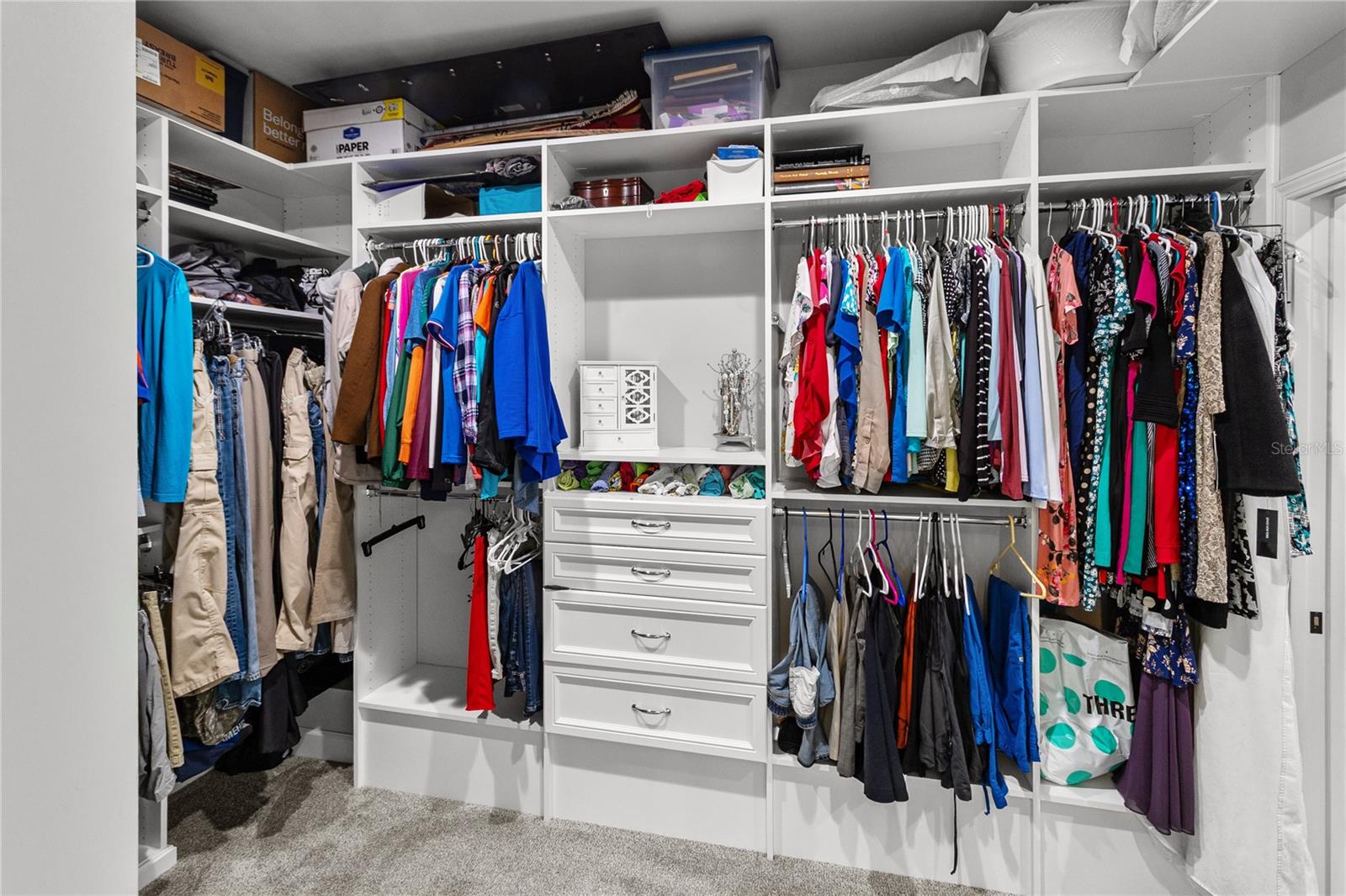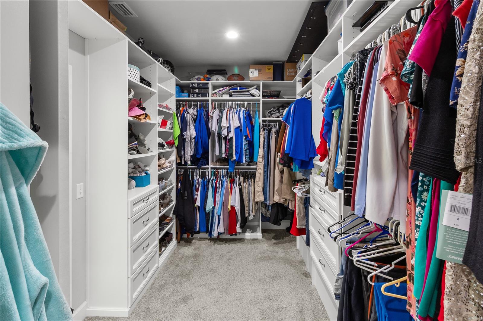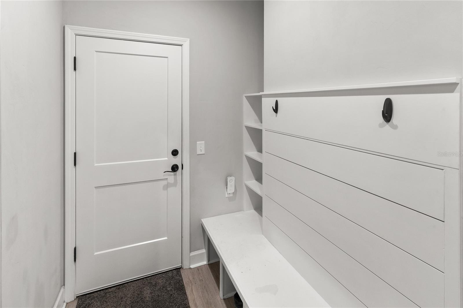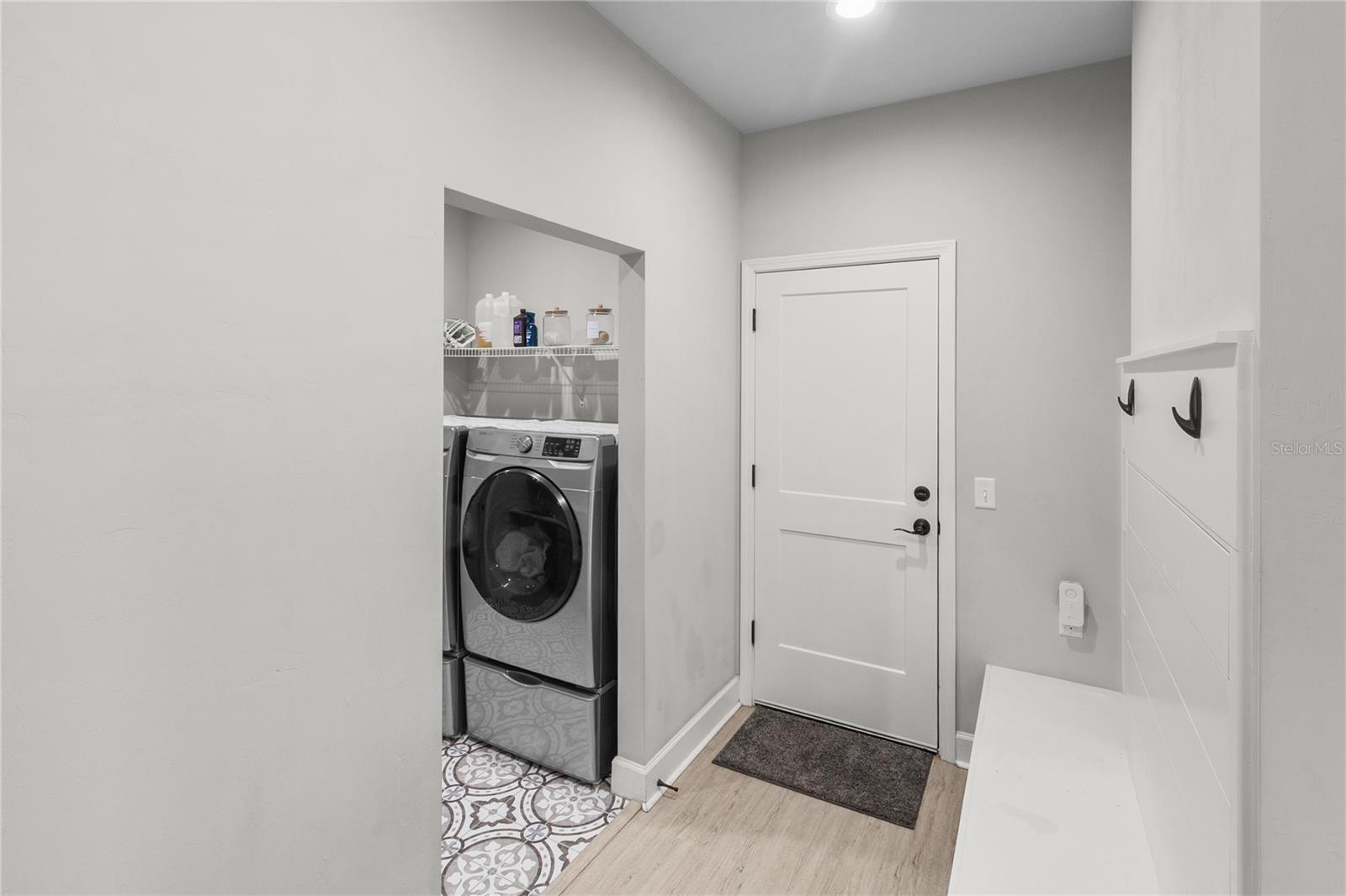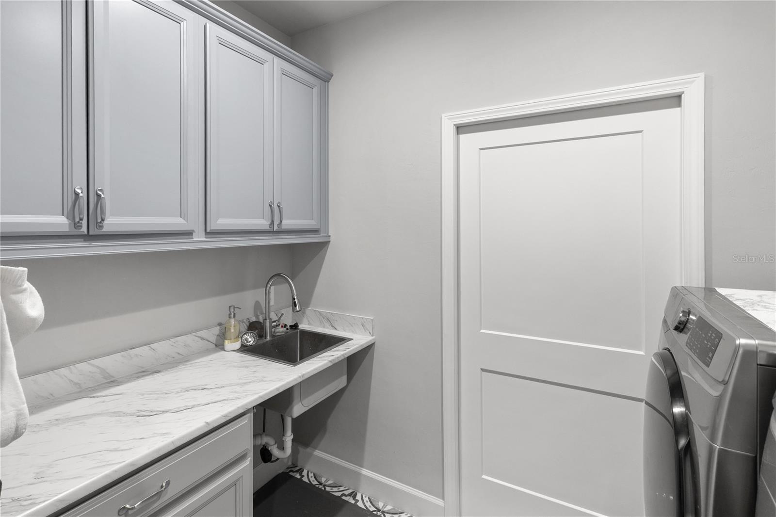 The primary suite feels like a private retreat, featuring a tray ceiling, a spa-style bath with a freestanding soaking tub, dual shower, and a fully custom walk-in closet with built-in drawers, shelving, and hidden storage. Two additional bedrooms share a full guest bathroom with a single vanity and elegant finishes. An office or flex space with a closet, a large laundry room with a utility sink, a half bath with both indoor and outdoor access, and a dedicated mudroom offer versatility and comfort for daily living. The three-car garage provides generous storage and space for vehicles, equipment, and hobbies.